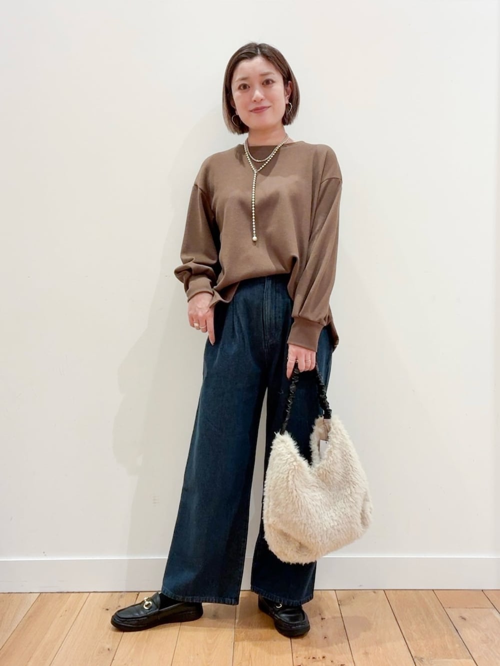袖にふんわりとボリュームがありシンプルながら一枚で様になるアイテムです。