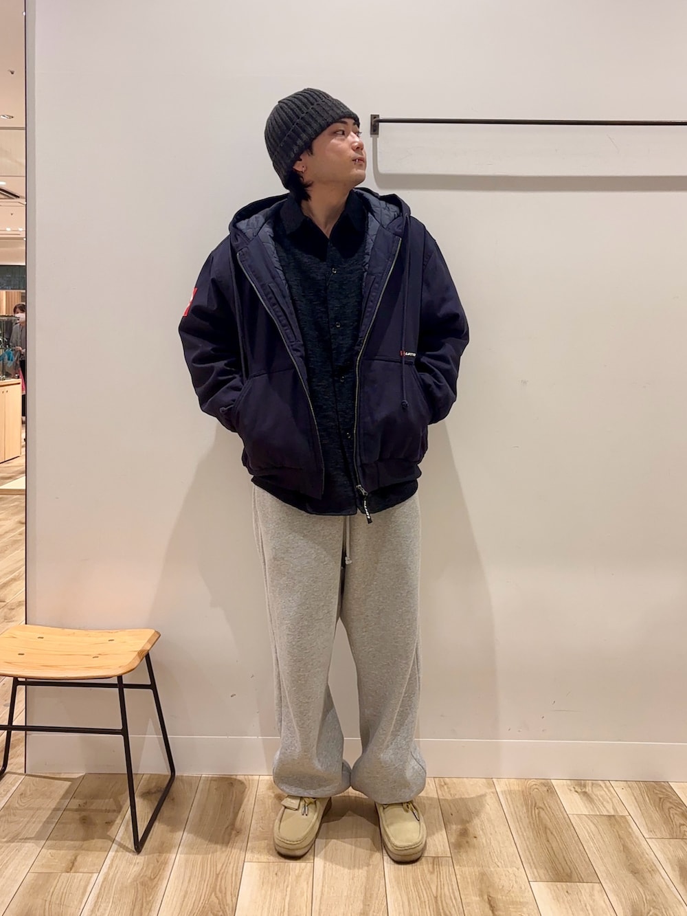 インナーはモールクラシックシャツで色は落ち着かせ生地感でインパクトを!