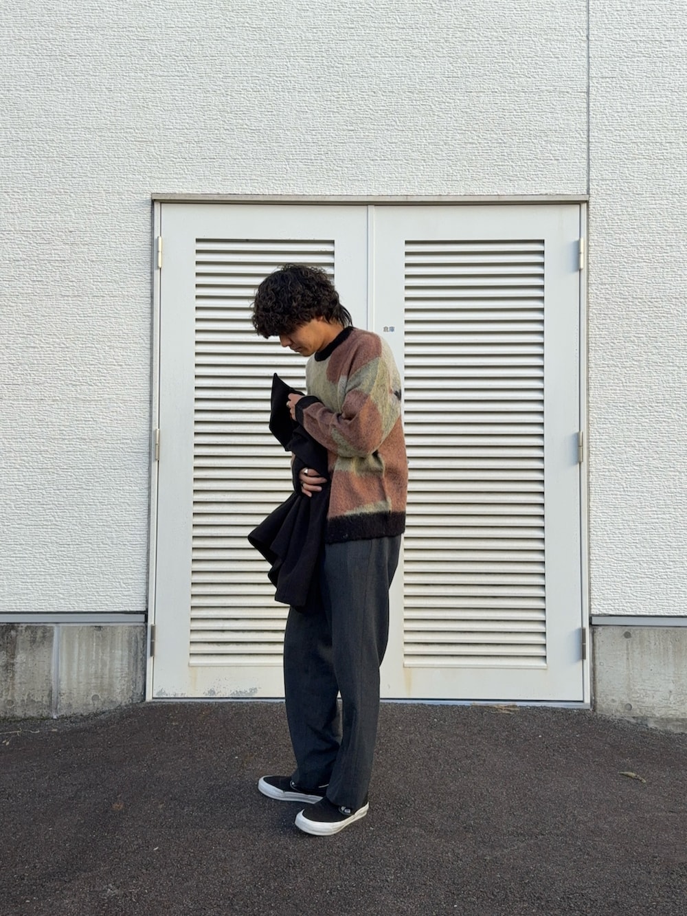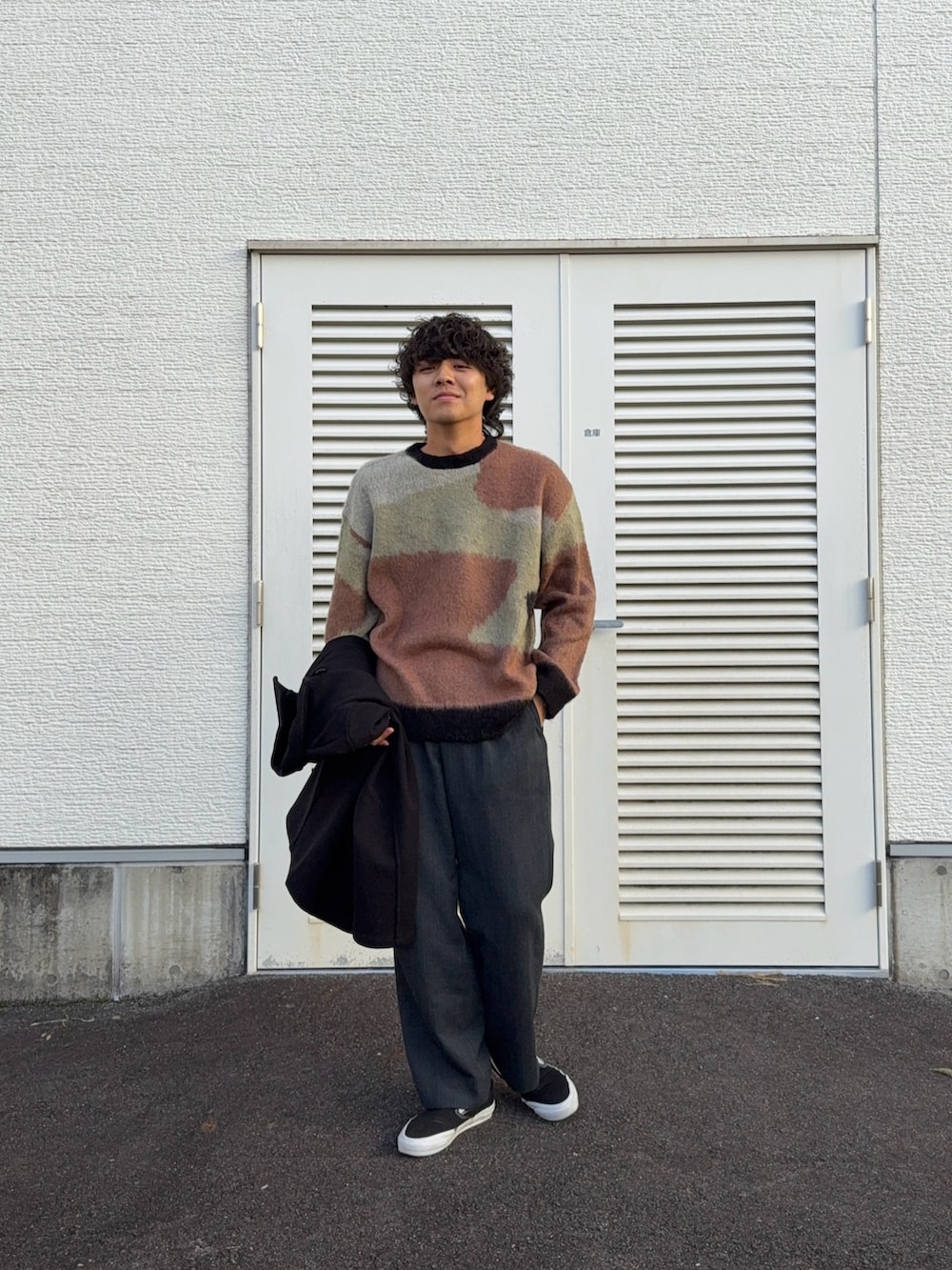 可愛い配色なのでスラックスと合わせて綺麗めにまとめています!