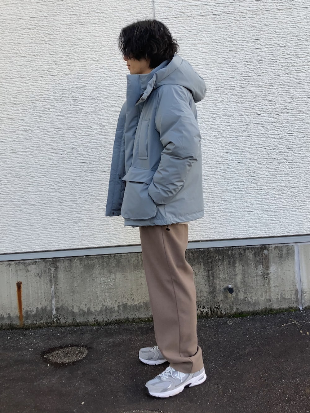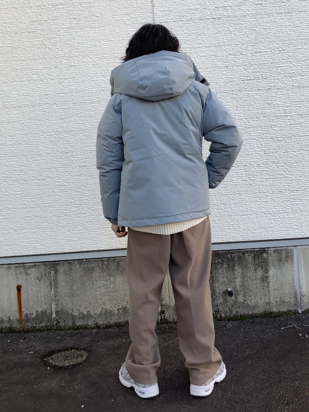 グレー系の靴に合わせて中綿ジャケットの色をグレー系にして統一感を出して、中のホワイト系のニットで少し個性を出し、ベージュのパンツでコーディネートしてみました!非常に暖かくて可愛く着こなせたかと思います!