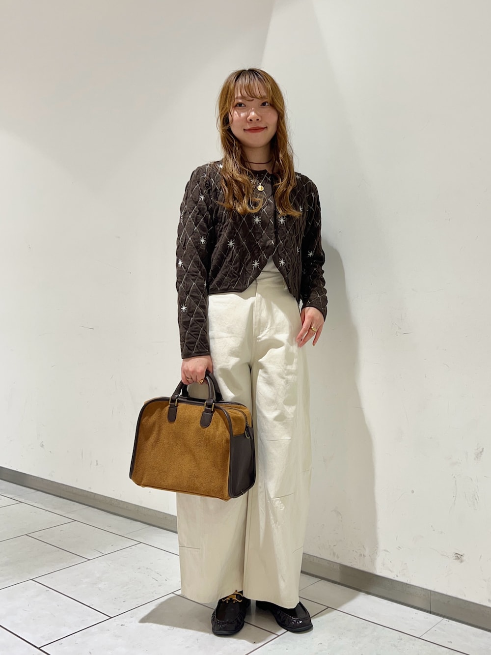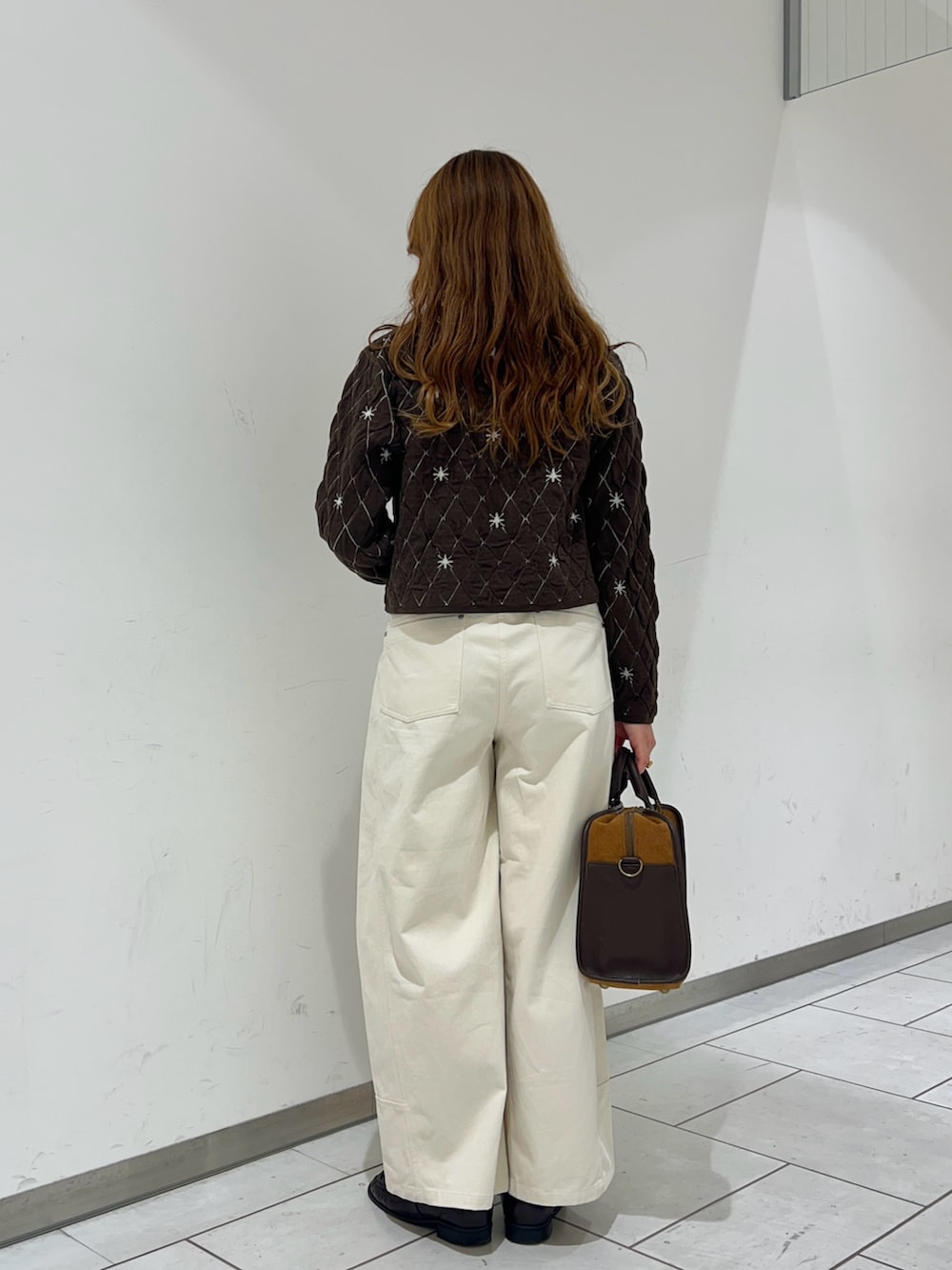 コクーンパンツもウエストが締まってみえるので、ワイドなシルエットでも脚長効果あります🧡