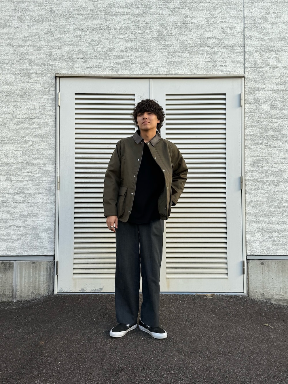 ウール混のダブルジャケットがかっこよくて着てみました!大人っぽく着こなして、あえてスニーカーでちょっと崩す感じが個人的なお気に入りポイントです!