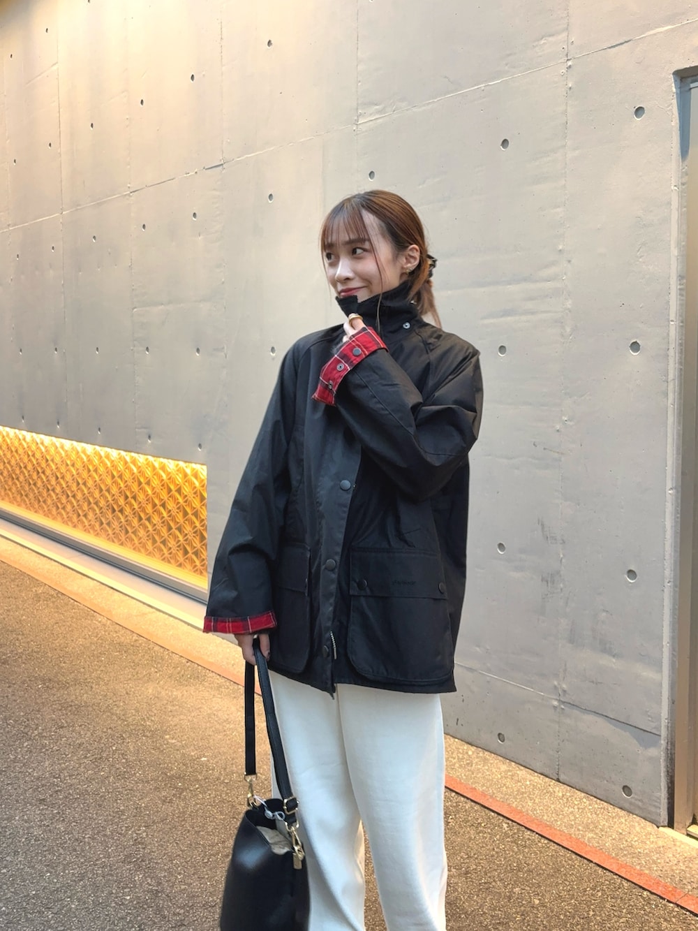 そして裏地の赤チェックが目を引きます💓