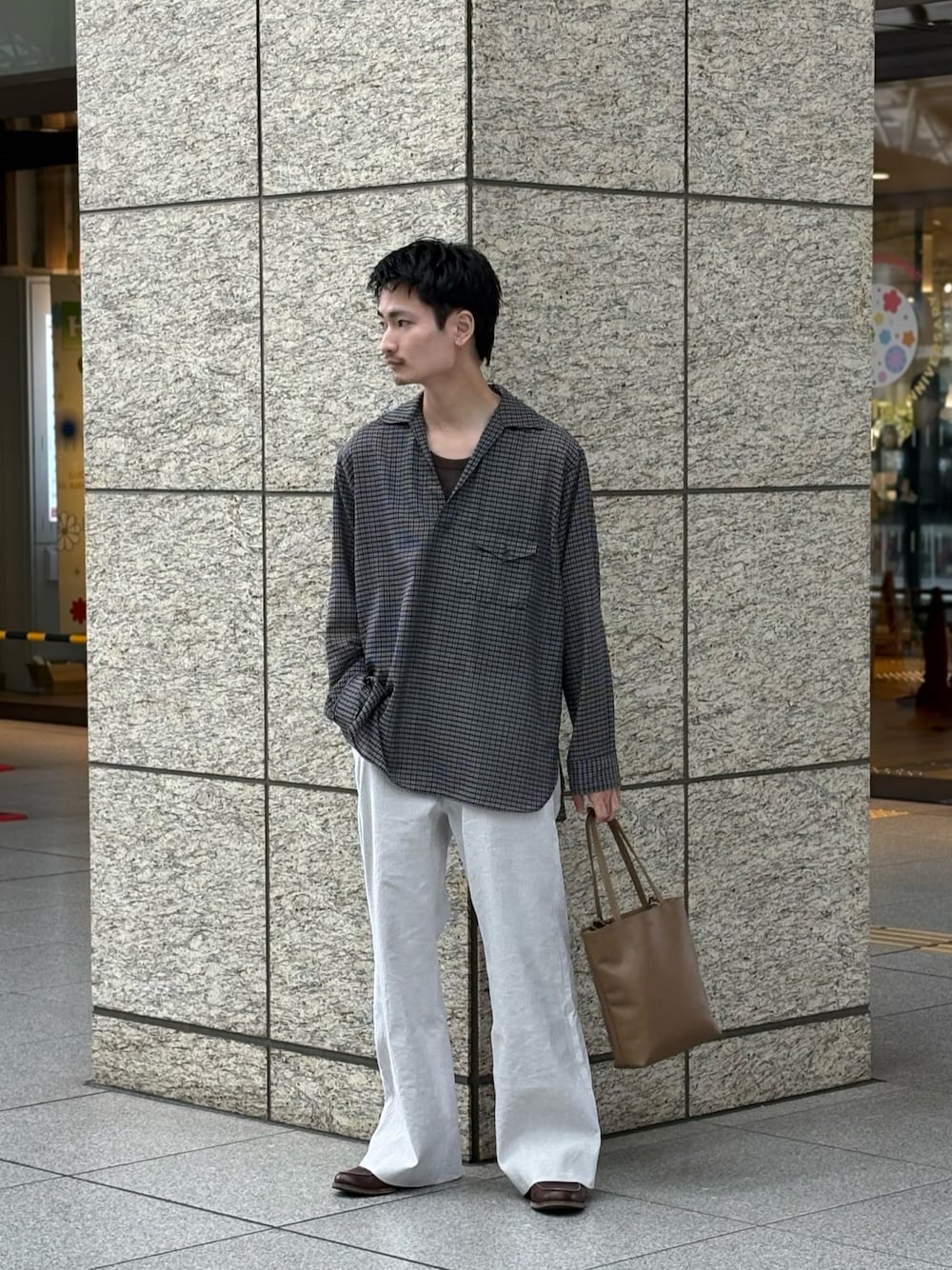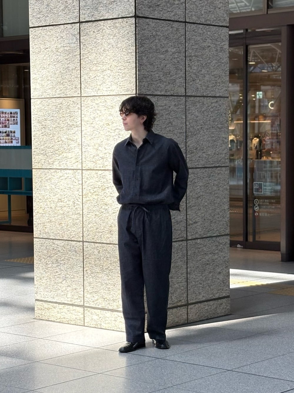 インナーには同じく素材ブランドとも言うべきかmarkawareのスキッパースウェットを合わせて、色味で遊んでみてます。