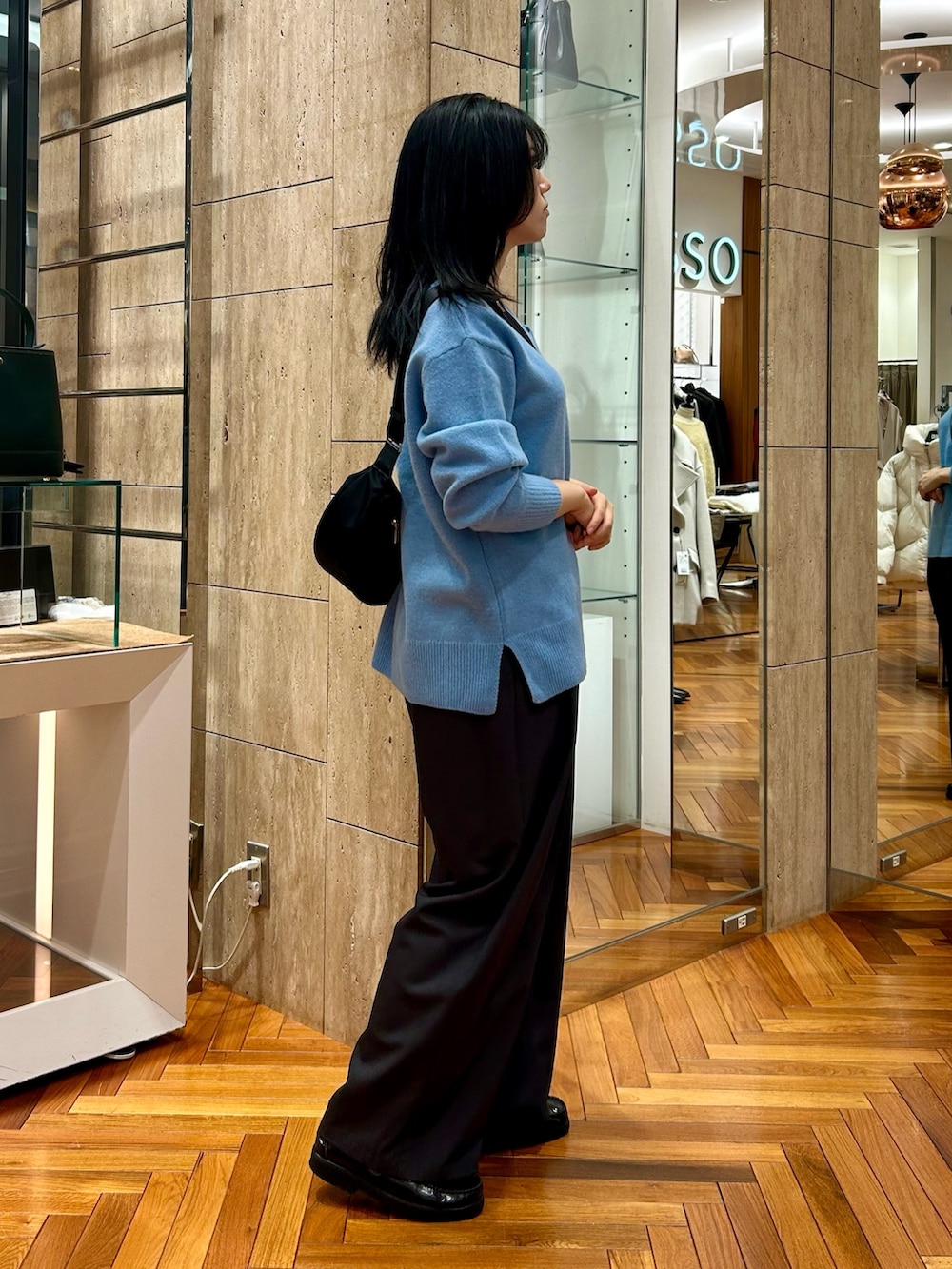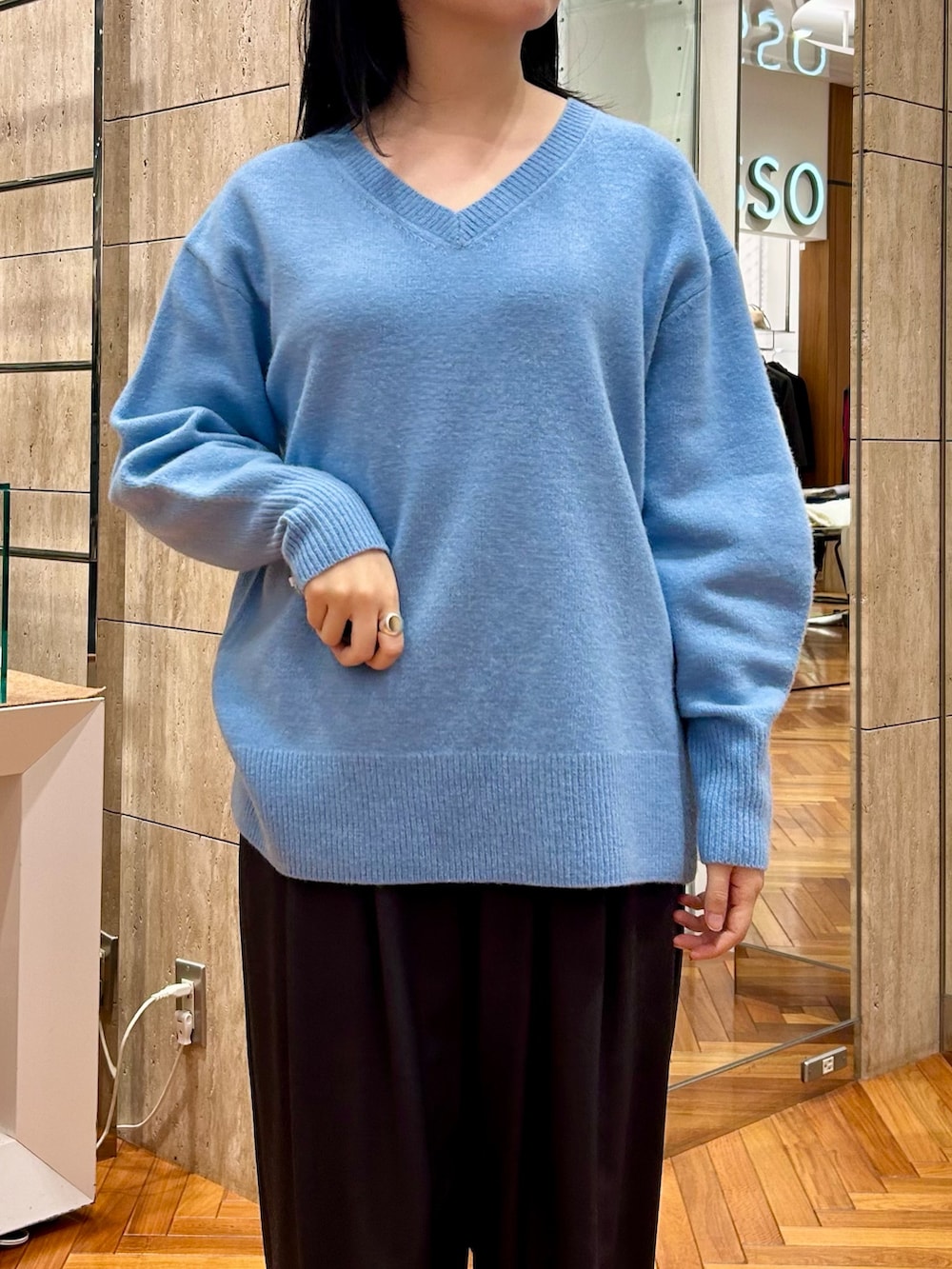 ゆったりとしてますが、手首のリブと深めのVネックで程よくスッキリな印象です。