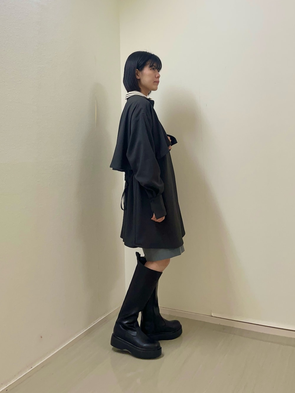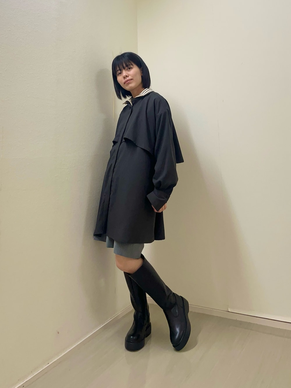 ミニワンピースとロングブーツ合わせの大人ガーリーコーデ◎