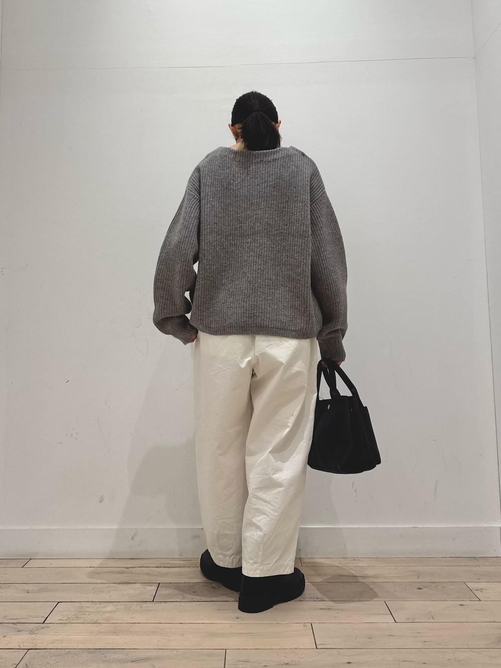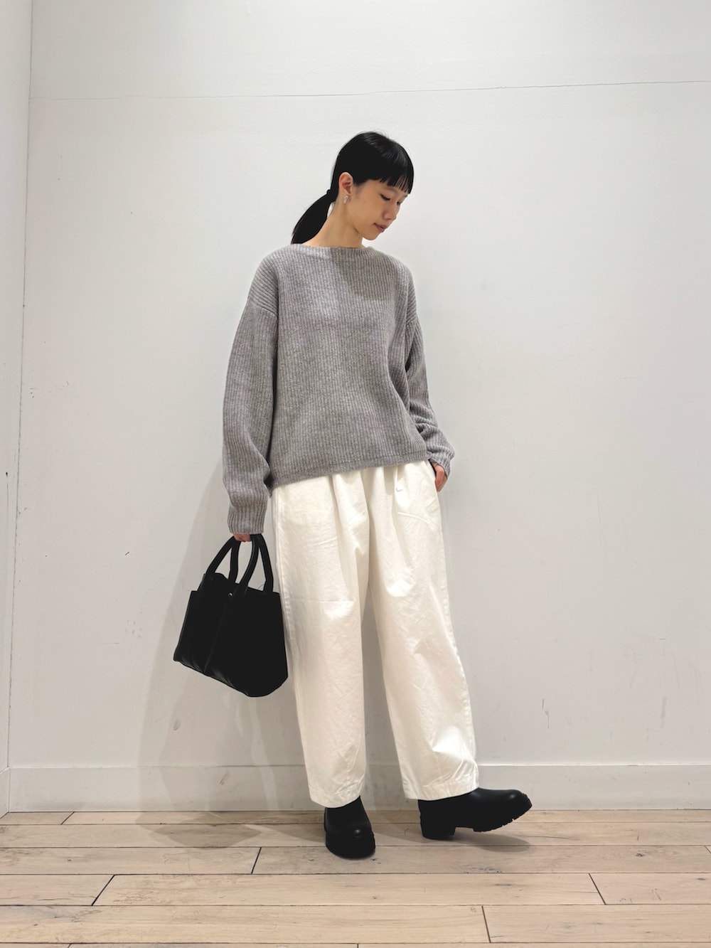ハミルトンボートネックは程よいゆとりで大きすぎないのでニットでもすっきり感あります‼︎丈も長すぎず、タック入りのパンツと合わせるときれいです☺️
