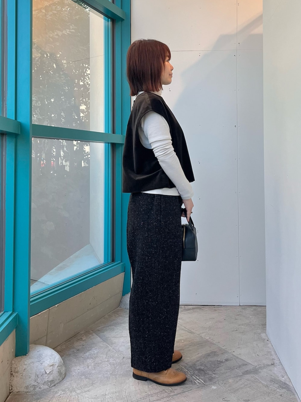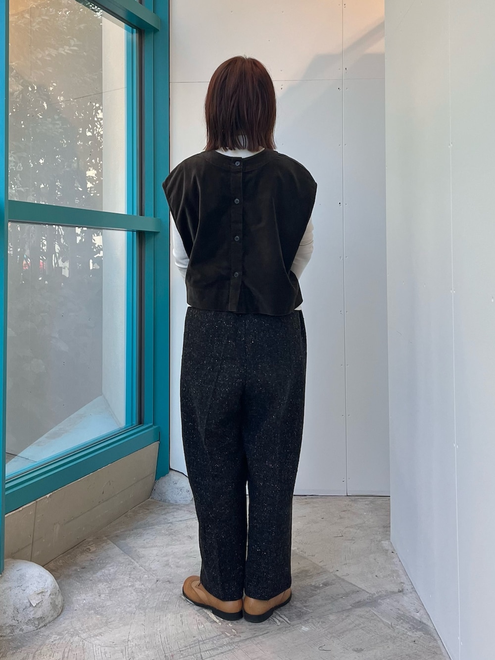 カラーネップのブラウンツイードのパンツに一目惚れです。