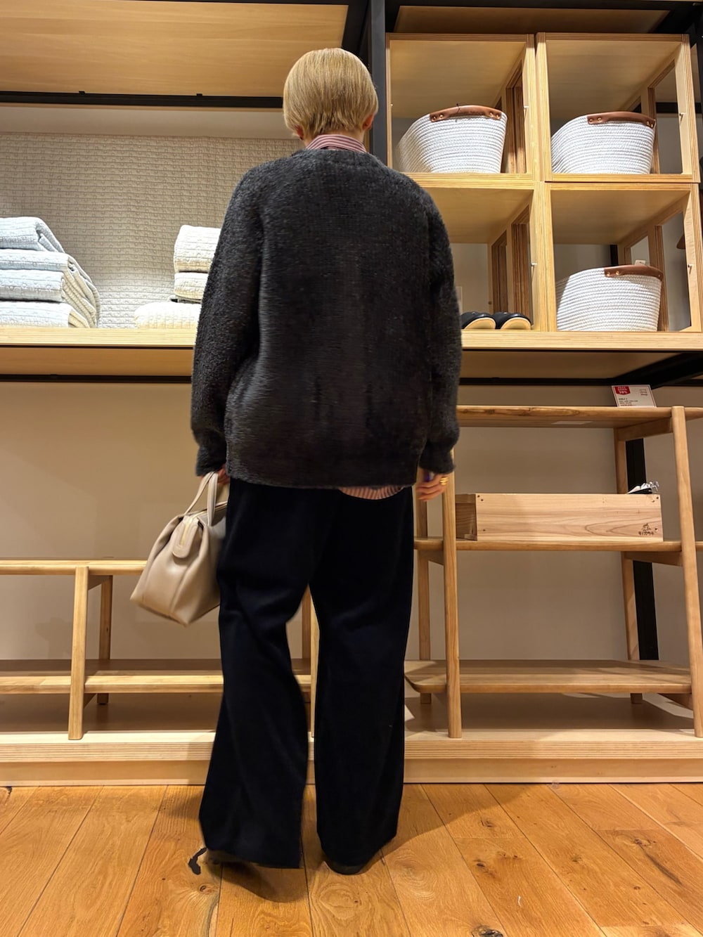 シャツ合わせが大人っぽくて、ベロアのパンツに合いますね!