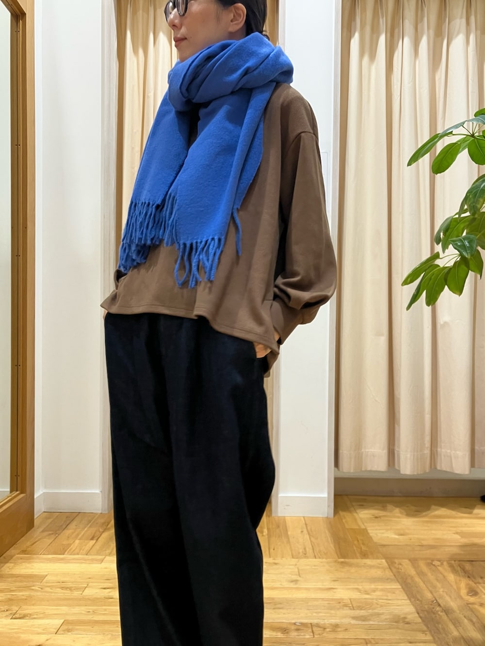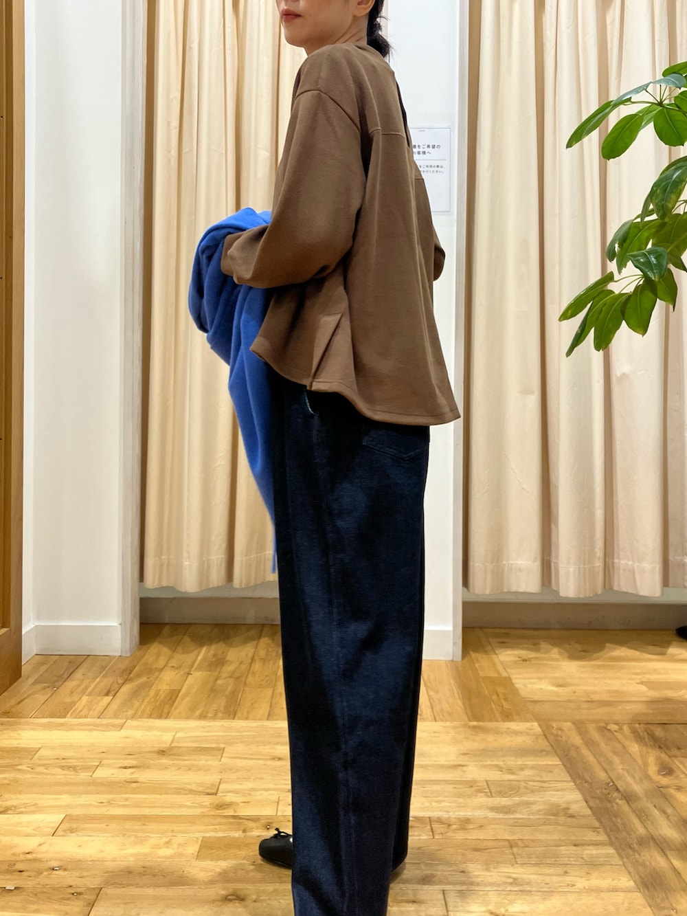 さりげないバックのリングボタンがワンポイントのプルオーバー。ゆったりオーバーサイズですが、程よい厚みでアウターも抵抗なく着ていただけます。
