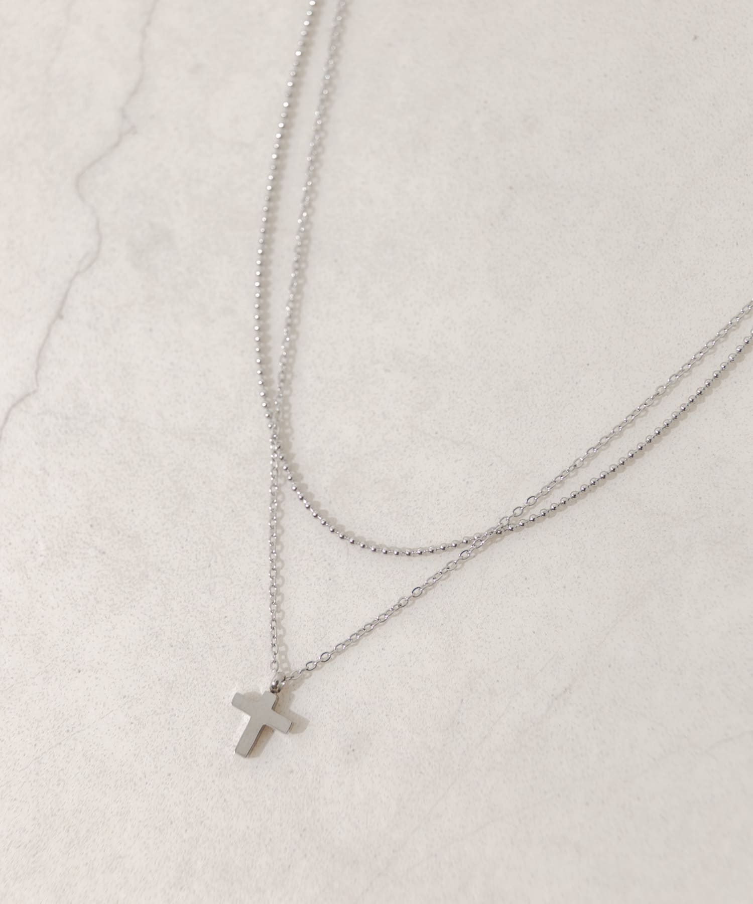 ステンレスクロストップレイヤードネックレス