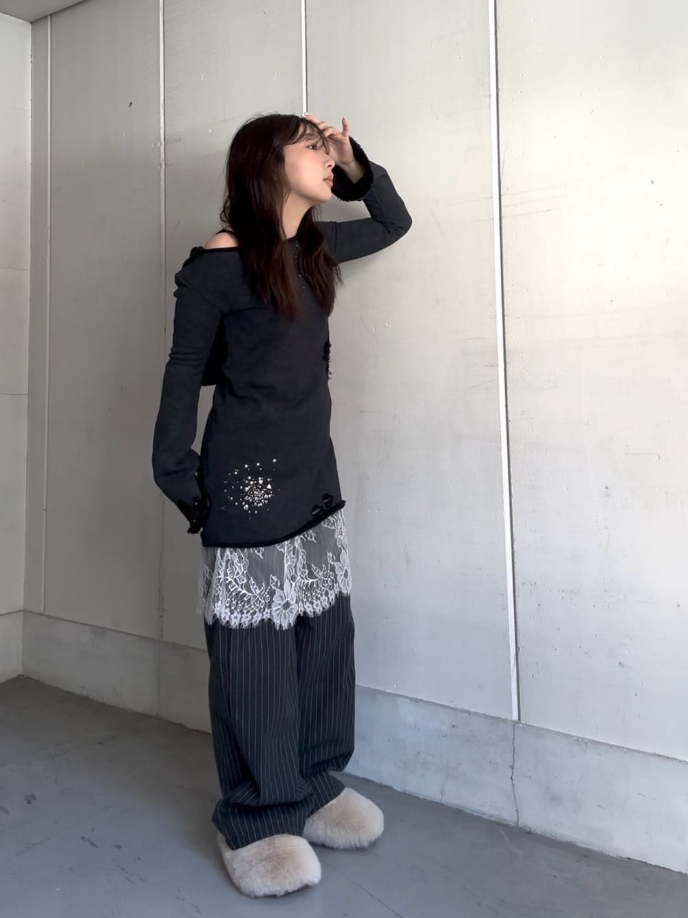 膝あたりにレースのデザインがチラ見えしてかわいい✨