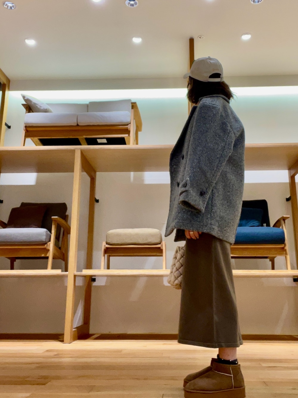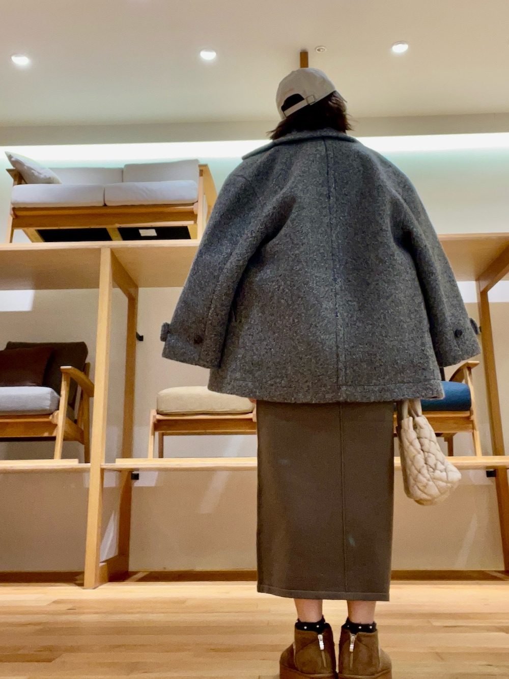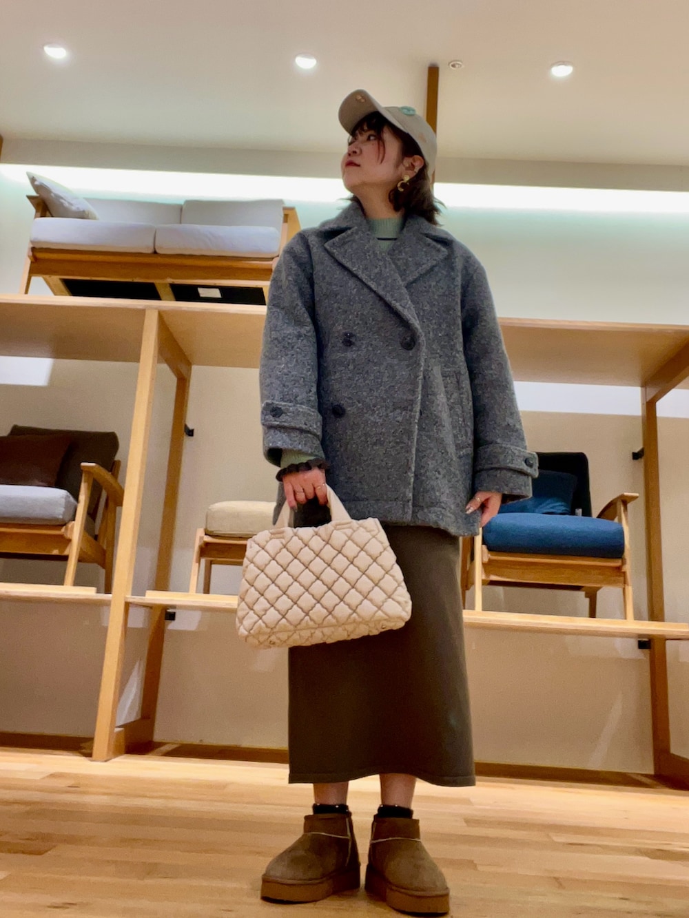 足元にはゆとりのあるムートンブーツを合わせてラフさを出しました‼︎