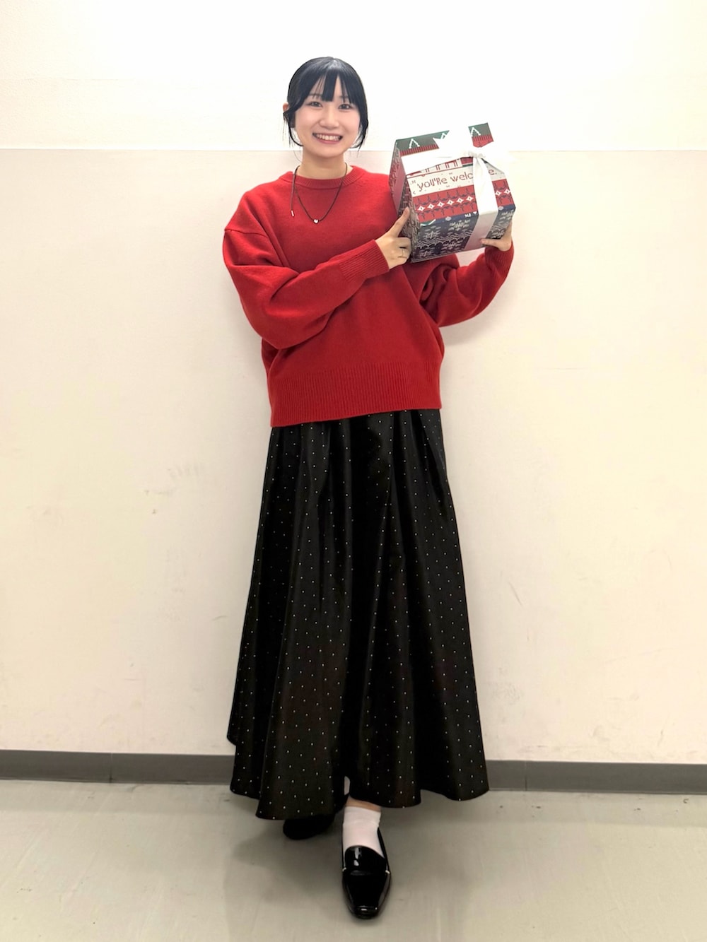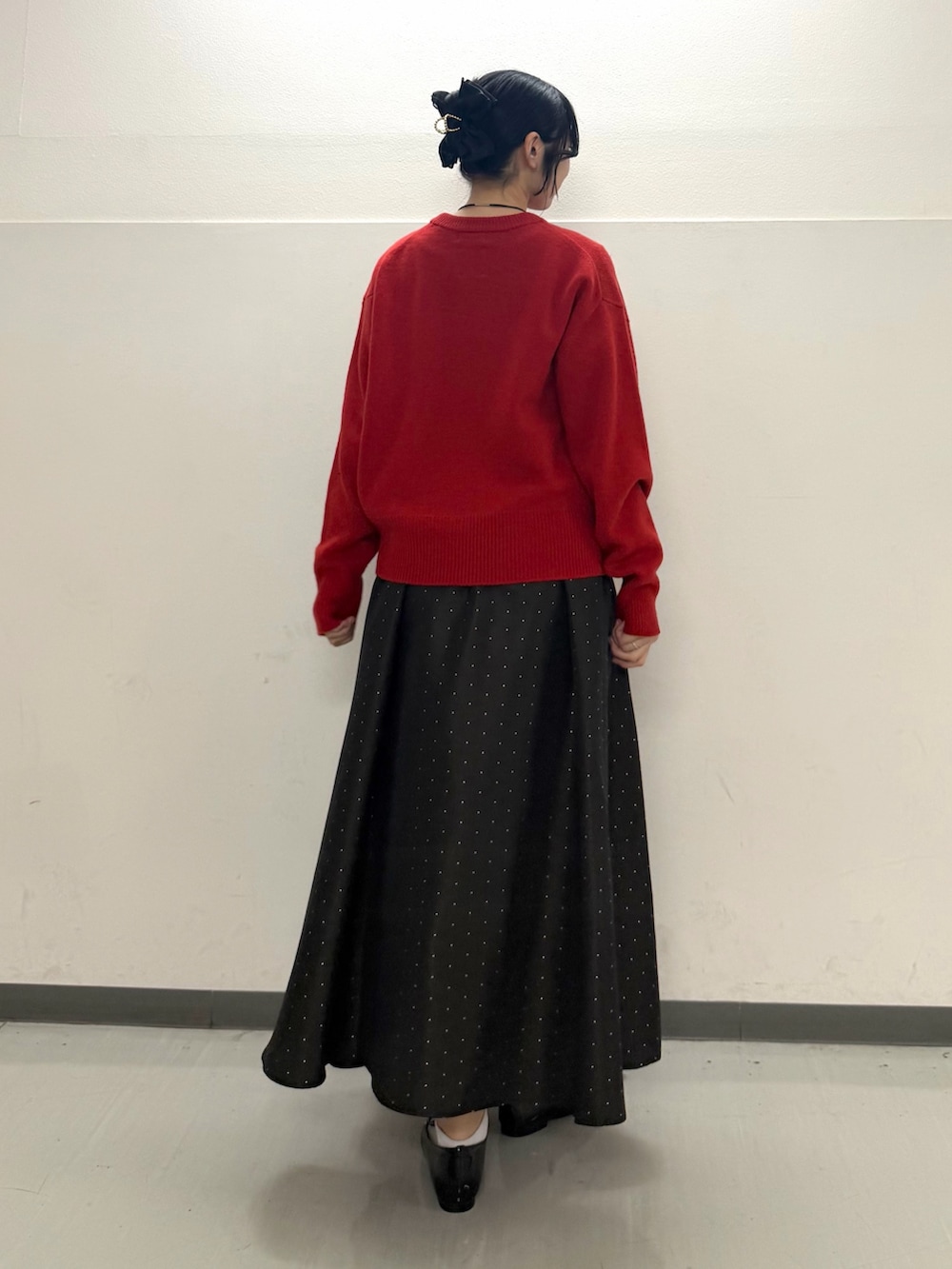 スカートは細かいドットが入っていますが、生地感に光沢感があり、甘くなり過ぎない上品なイメージになっております!