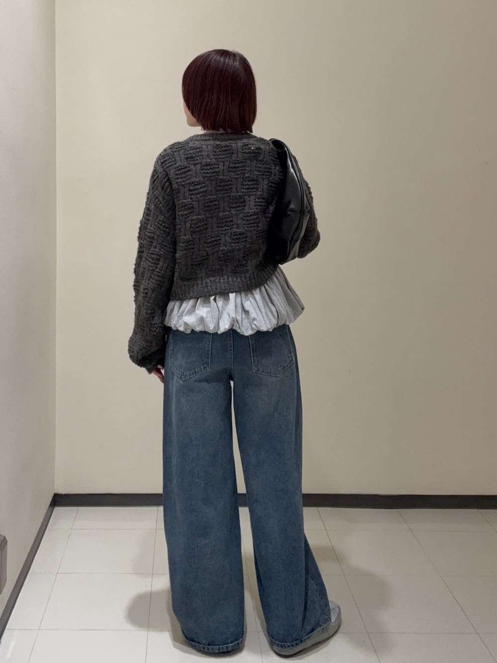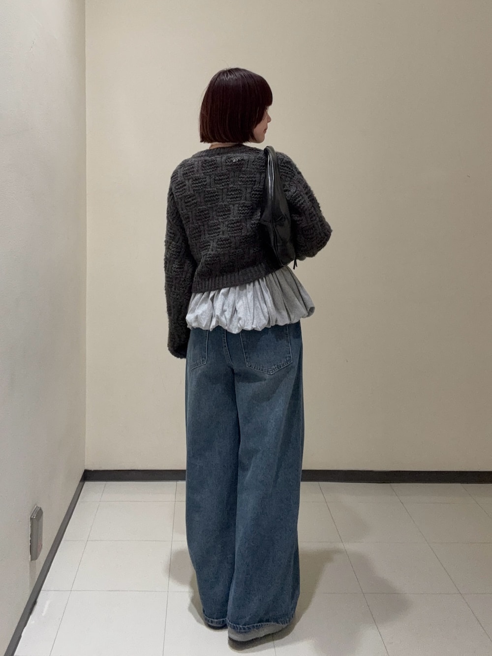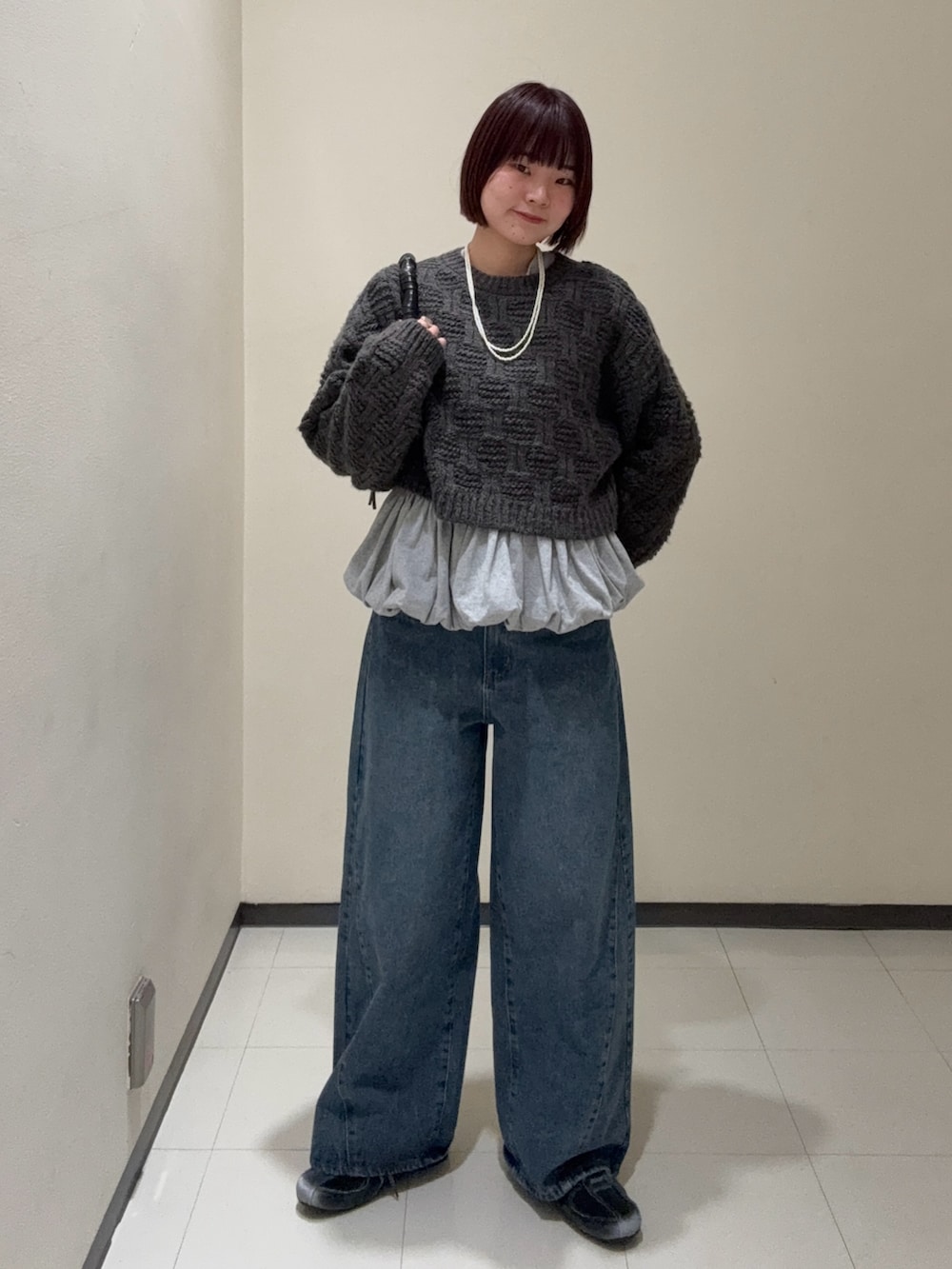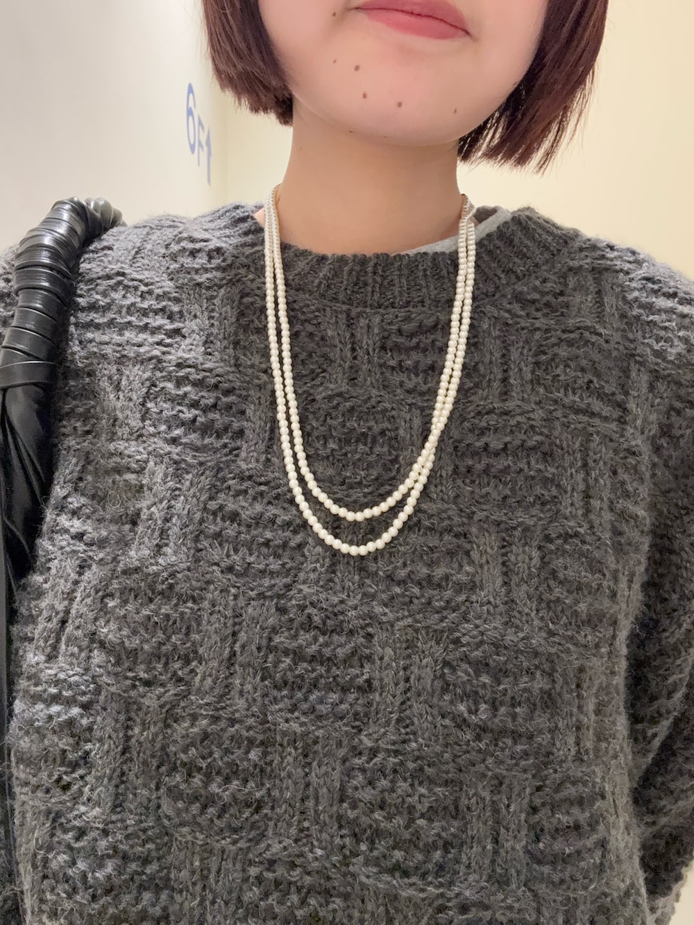 ニットの下にカットソーをレイヤードして普通すぎない、フェミニンなコーデを意識しました!^^