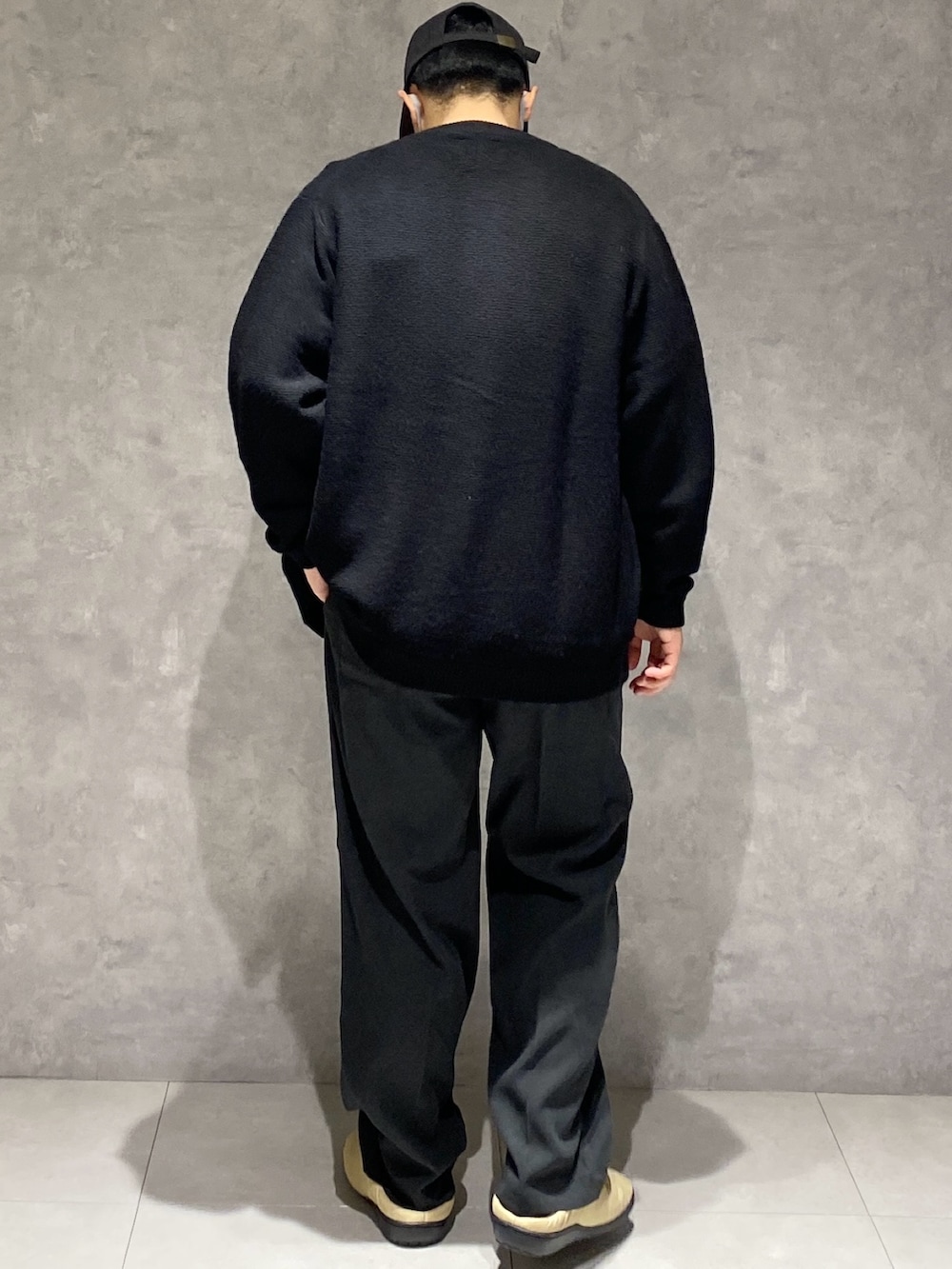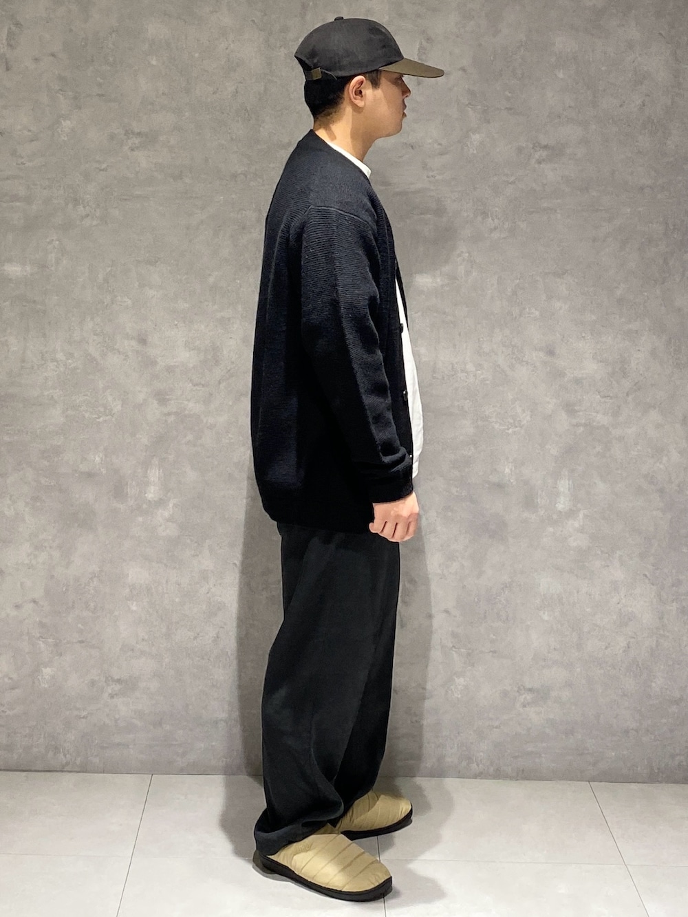 今回着用したカーディガンはハミルトンウールを使用しており柔らかく、チクチク感がないのが特徴です。