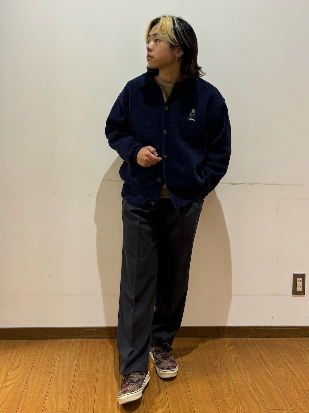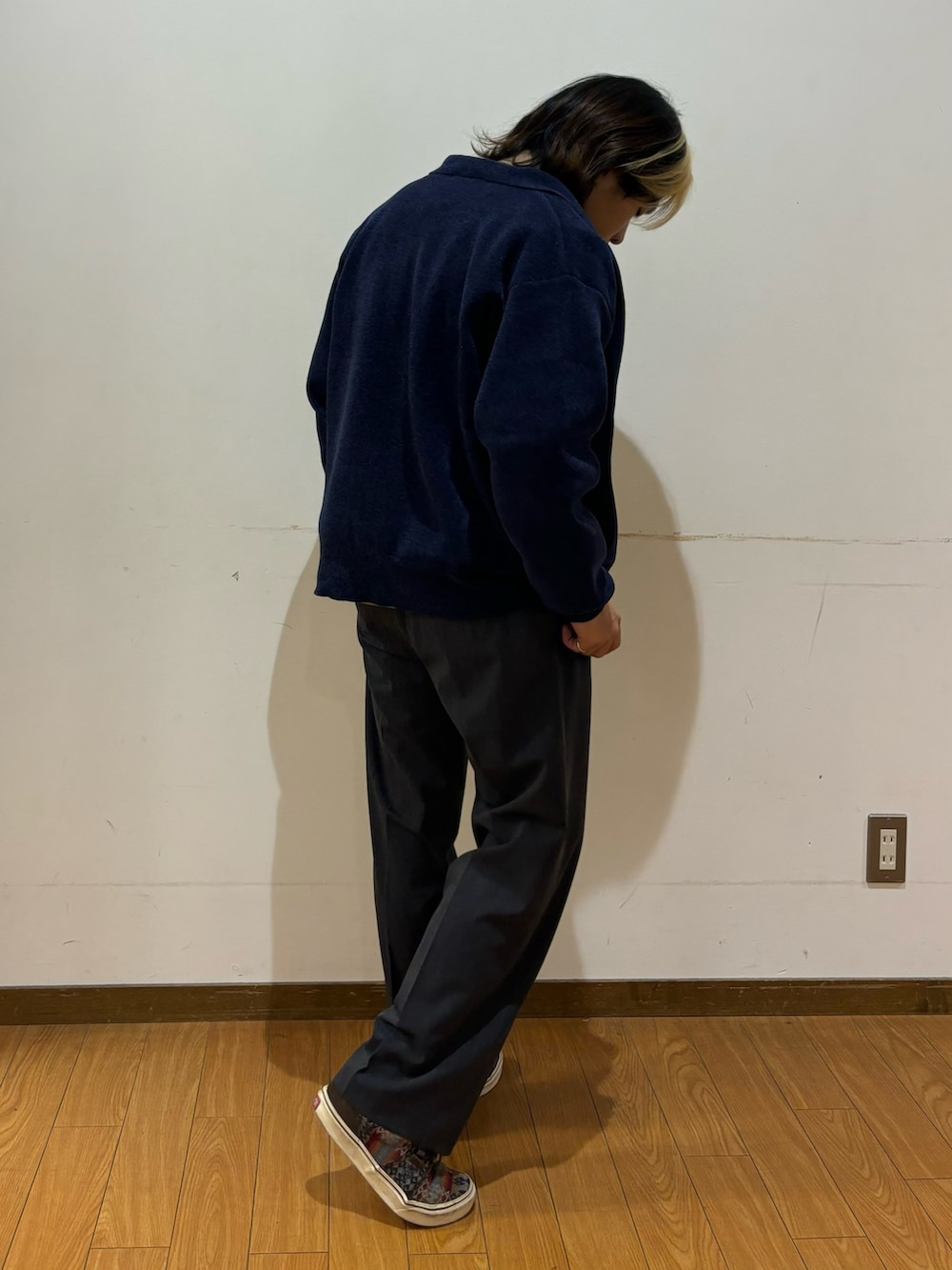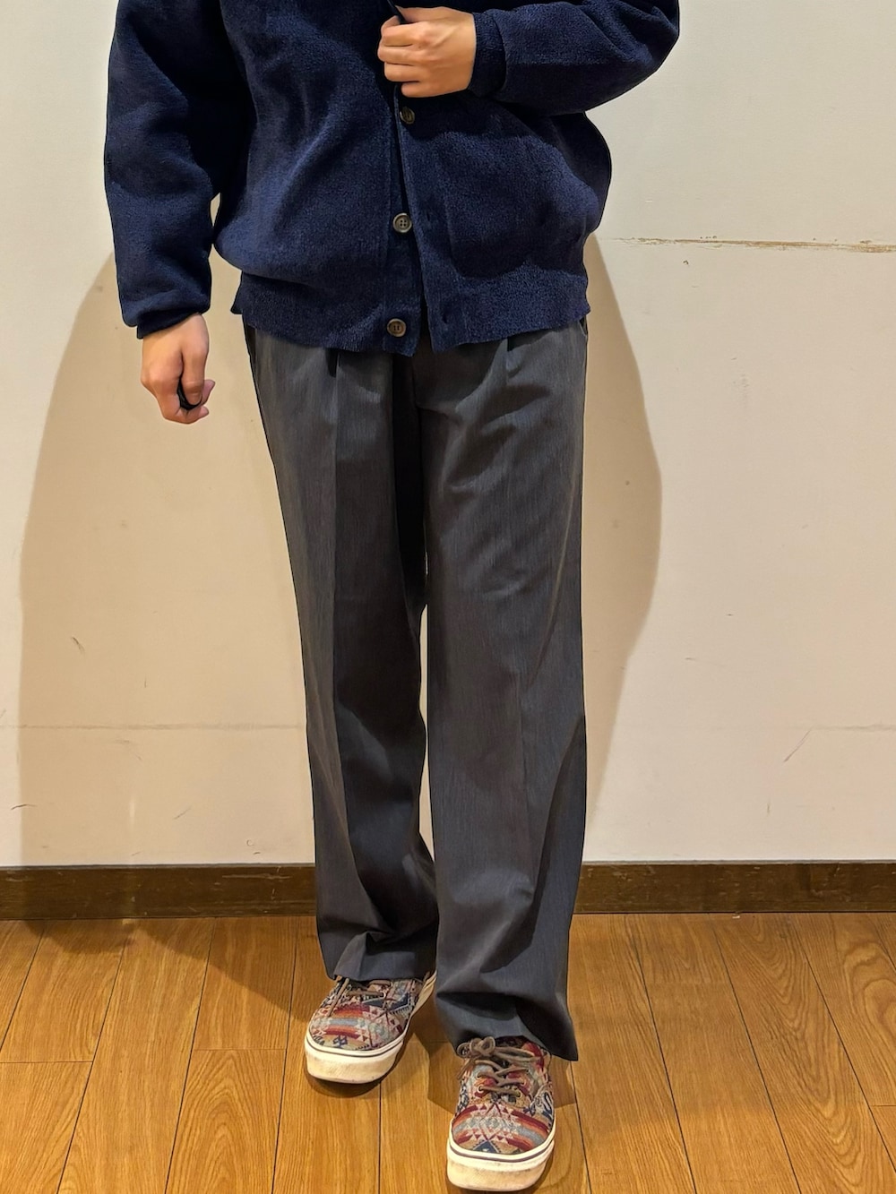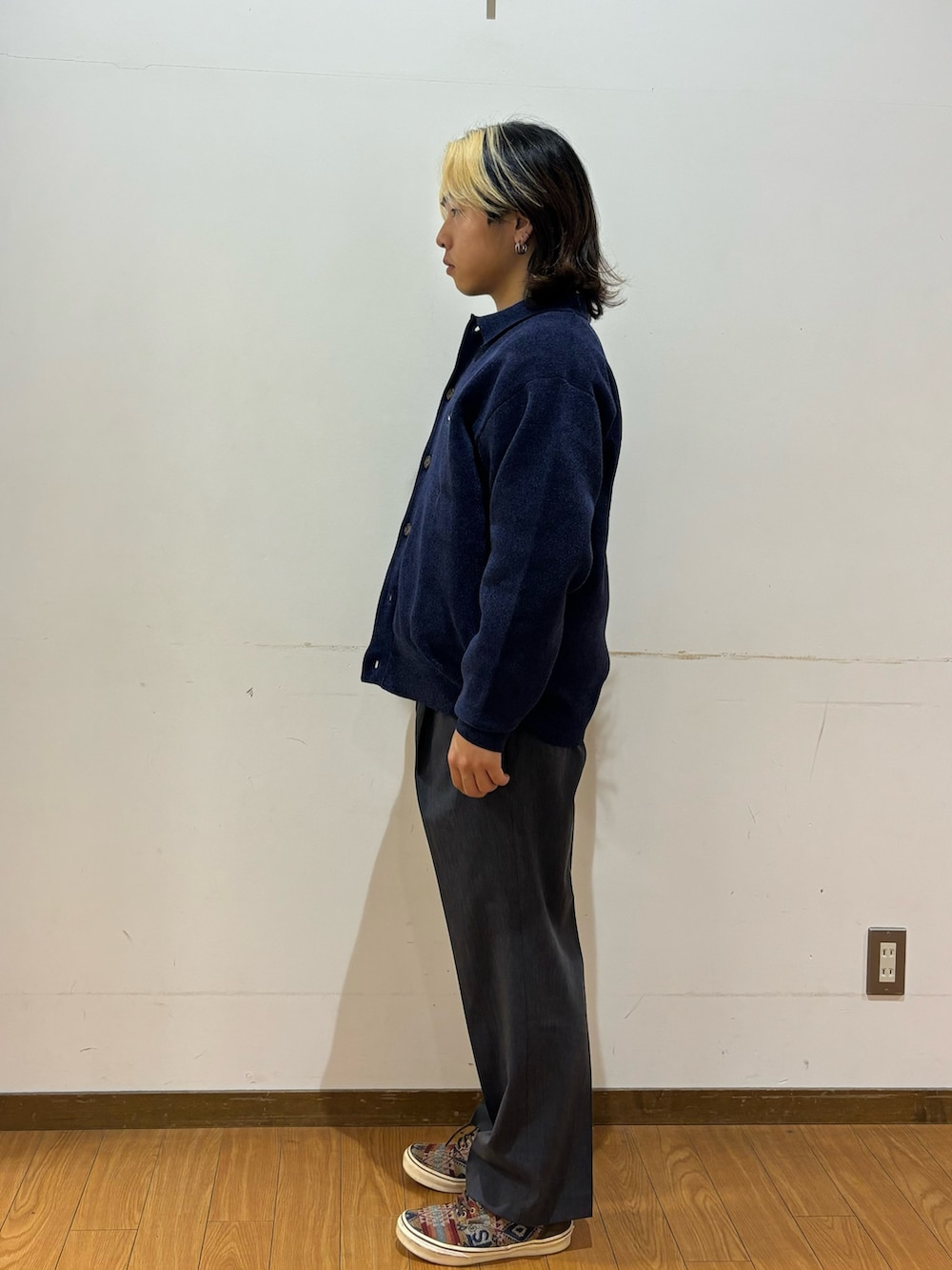 ボトムスのスラックスはややワイドでテーパードかかっており、シルエットがきれいです!