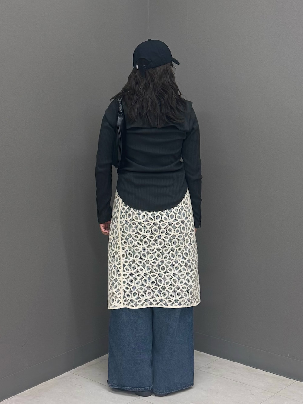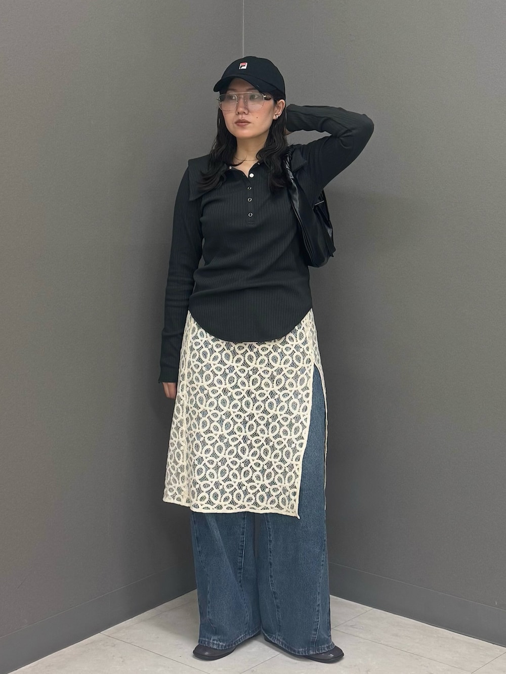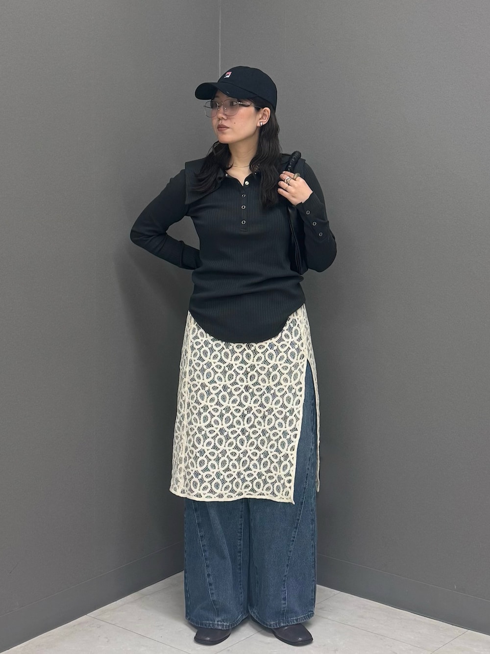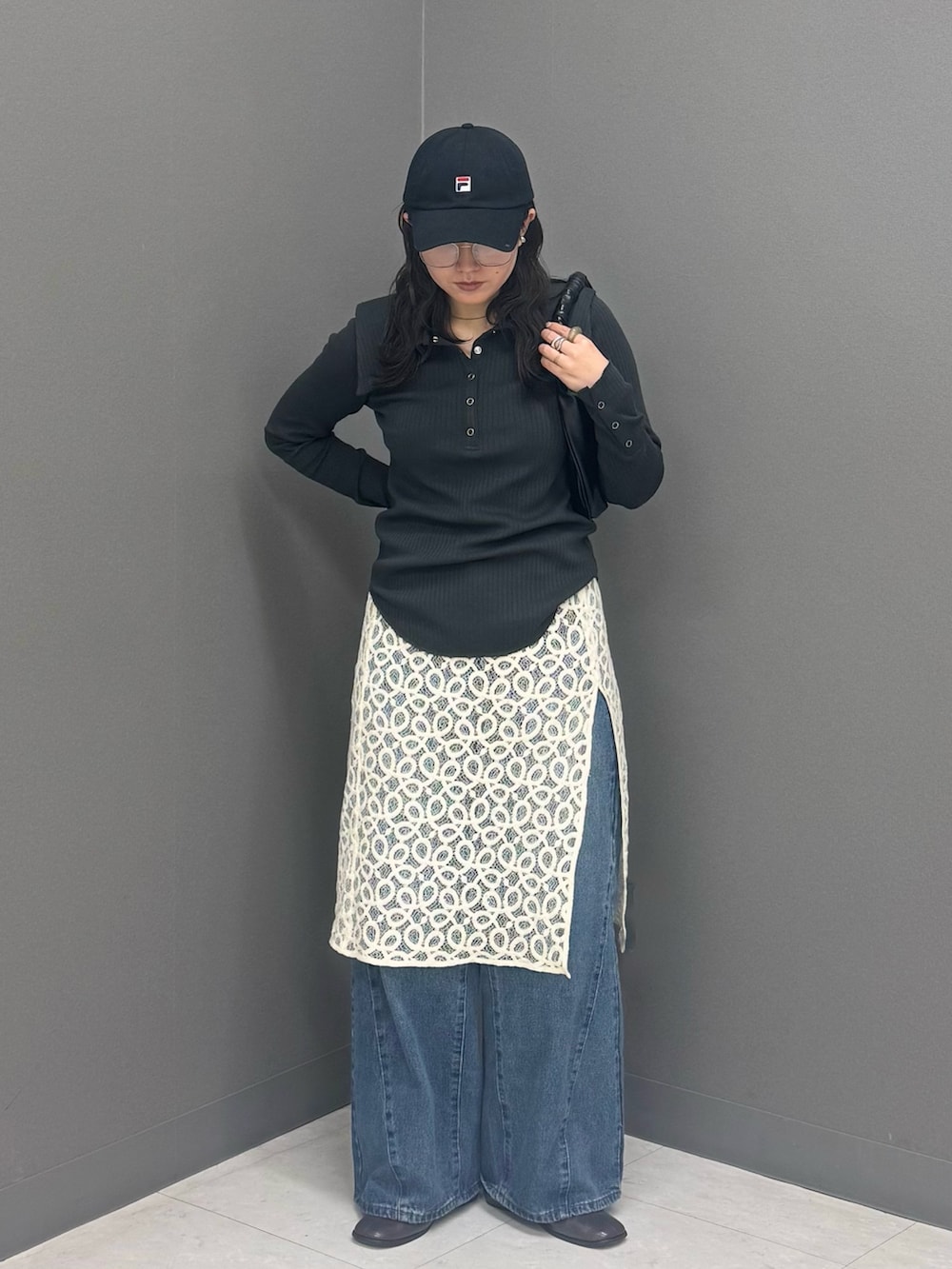 袖のリングドットボタンをアウターからチラ見せするのもおすすめです◎