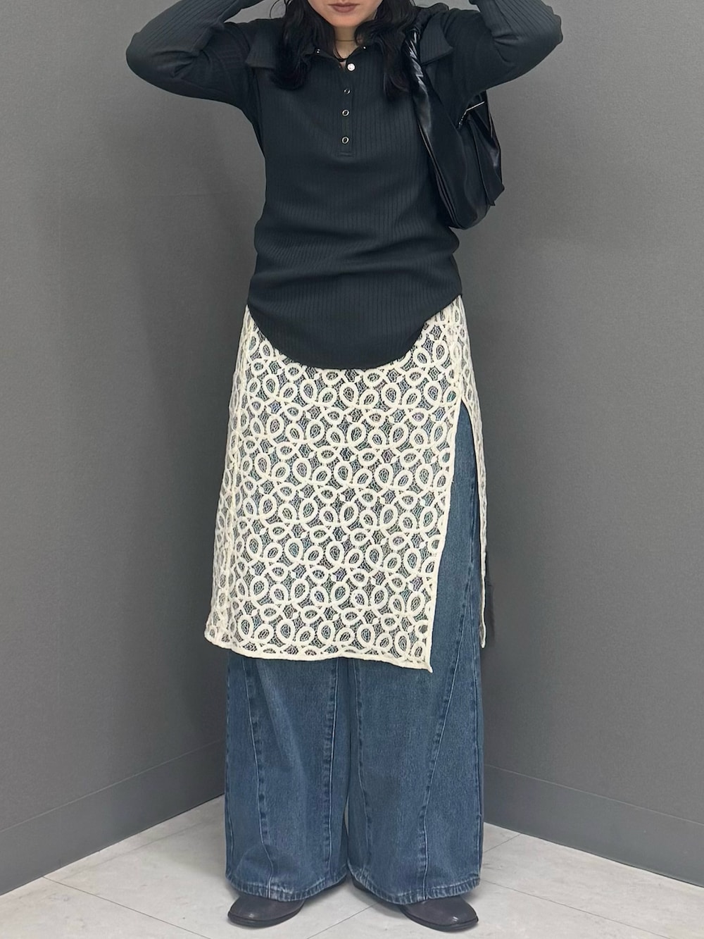 シンプルなリブながらも、ブラウスのようなディテールで女性らしさも