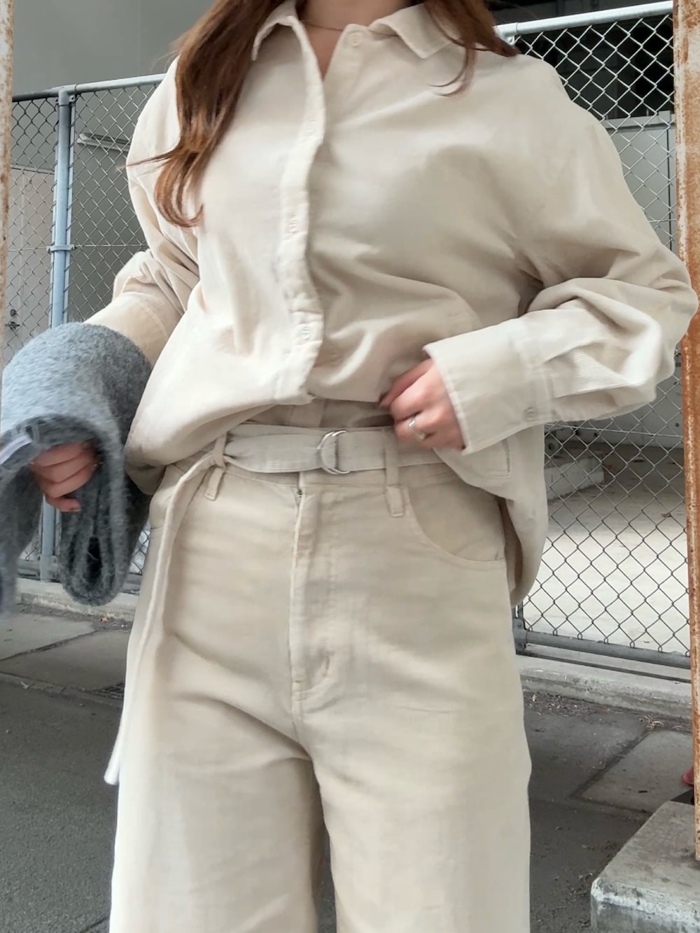 インしたときのベルトがポイントになってかわいいです🤍コーデュロイの生地なので、白色でも透け感なしです!
