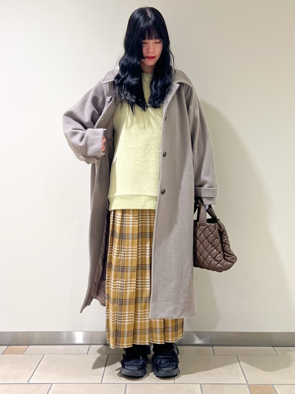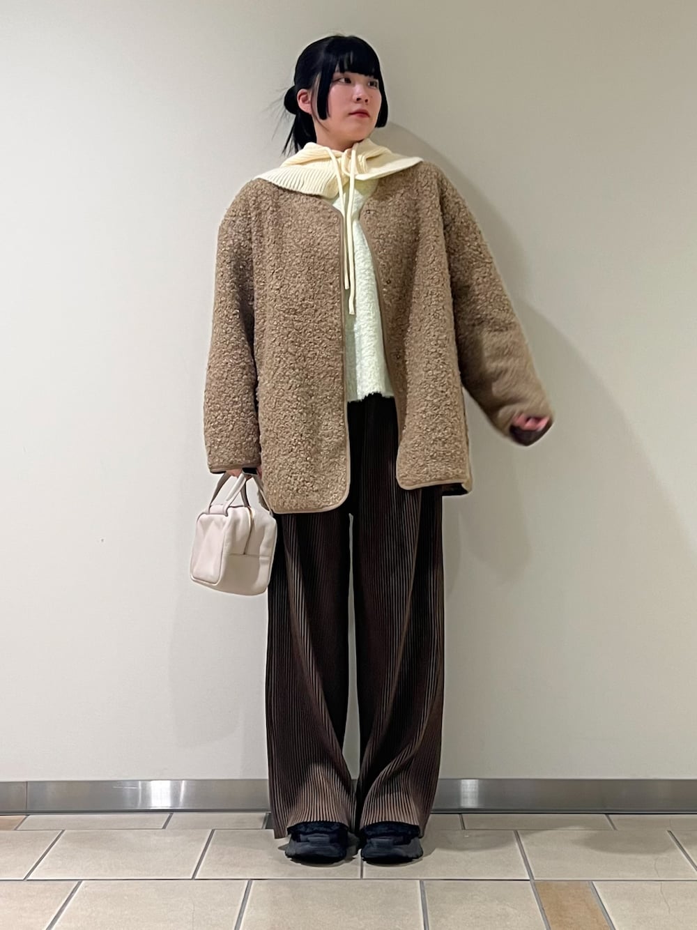 ニットは短め丈感なのとワイドスリーブになっているので腕が長くみえて全体的にスタイルアップして見えます!ꕀ☆