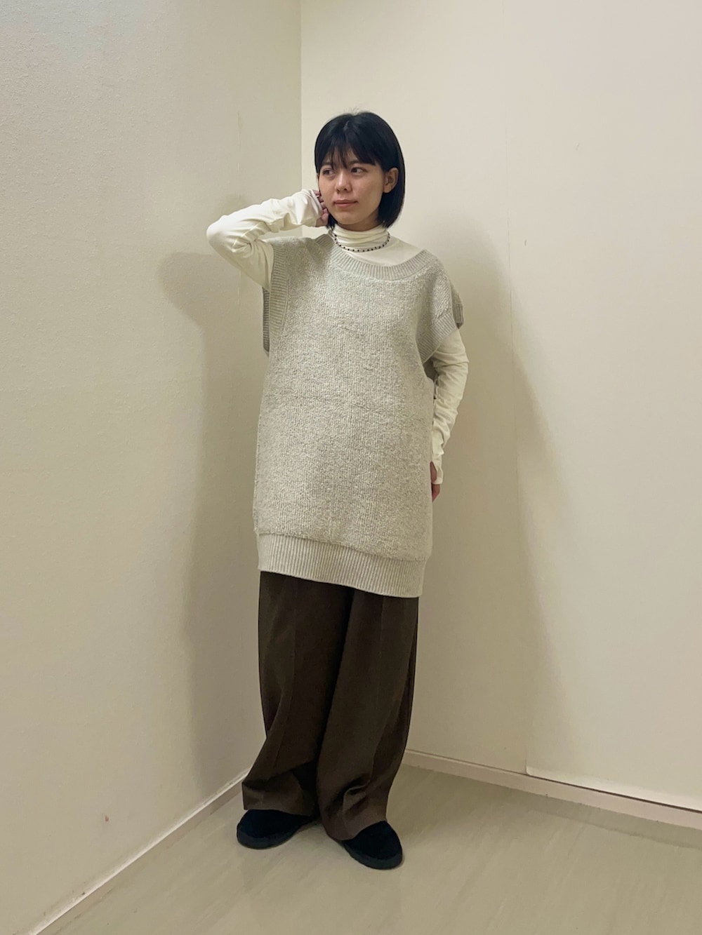 前後どちらでも着れるニットを使ったコーディネートです🙆‍♀️✨️