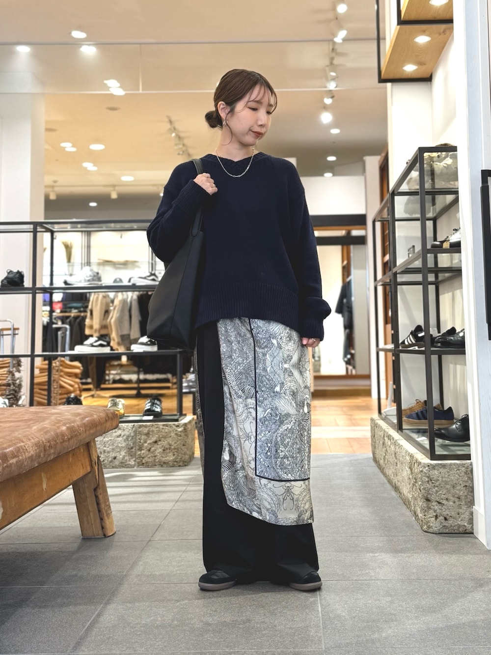 大判なRODESKOのスカーフは腰に巻いて大きく柄を出してみました。首に巻いたりカバンに付けたり多種多様な使い方が出来ます◎