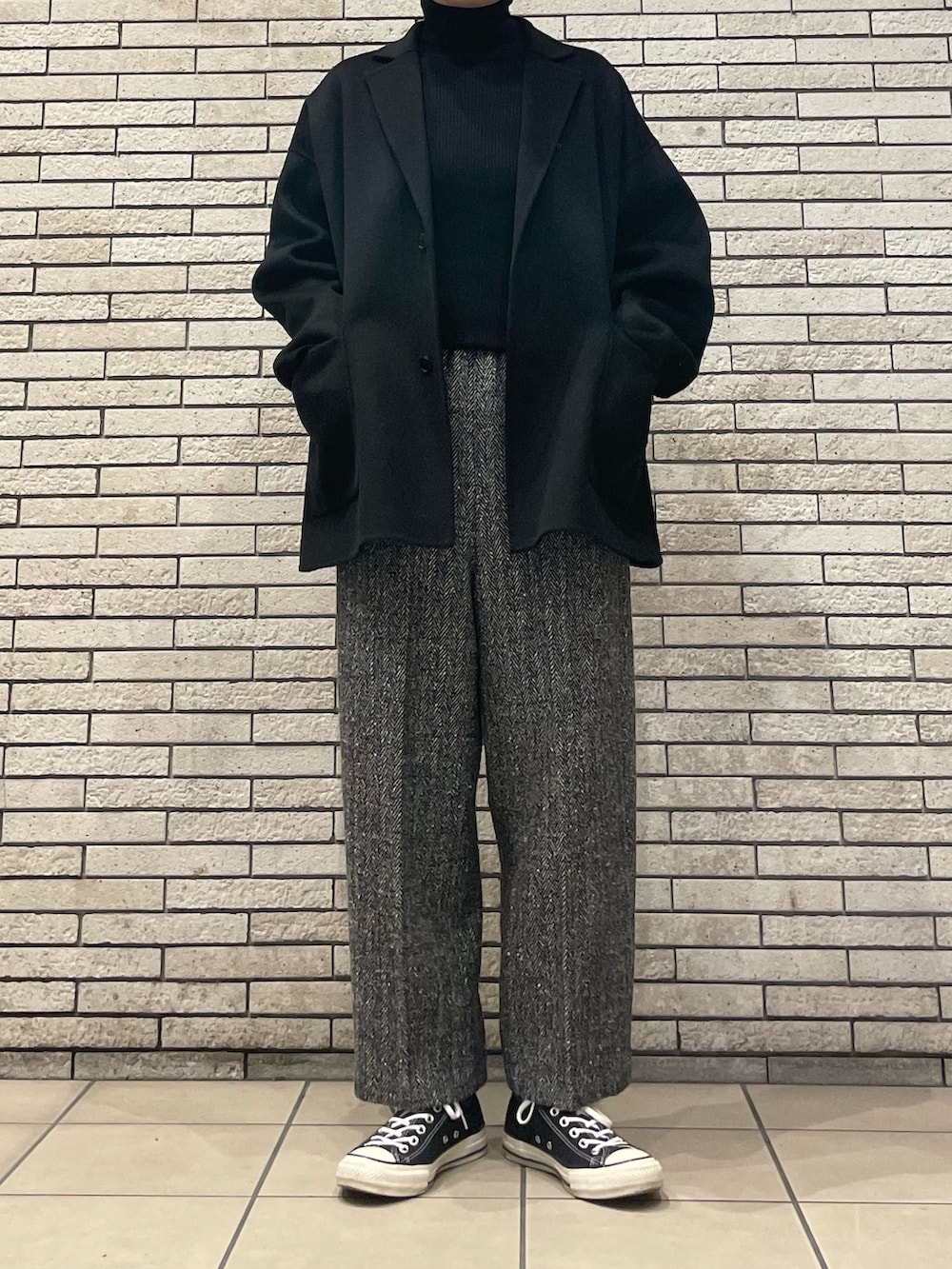 パンツはきちんと感がありつつ、ウエストはゴム仕様で楽に着用いただけます。センタープレスが脚のラインをすっきりと◎