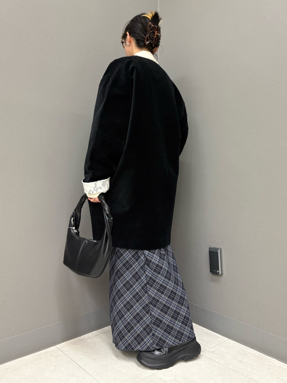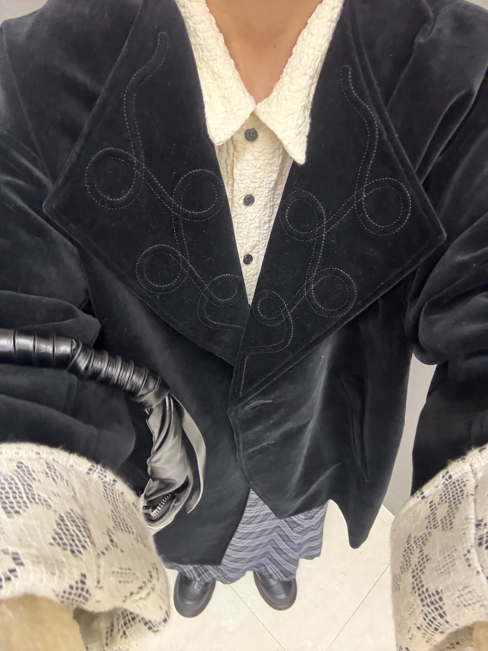 ベロアのアウターは、落ち感と丸みが綺麗で、着ると一気にオシャレ感・こなれ感が増します❗️