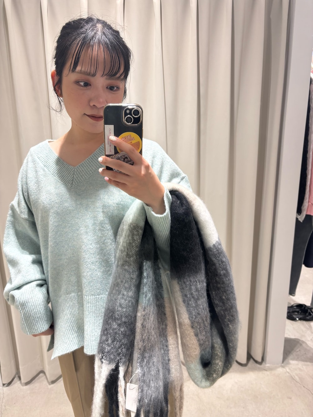 大きめなチェック柄は色味が淡いので、色々なお洋服に合わせていただきやすいです◎