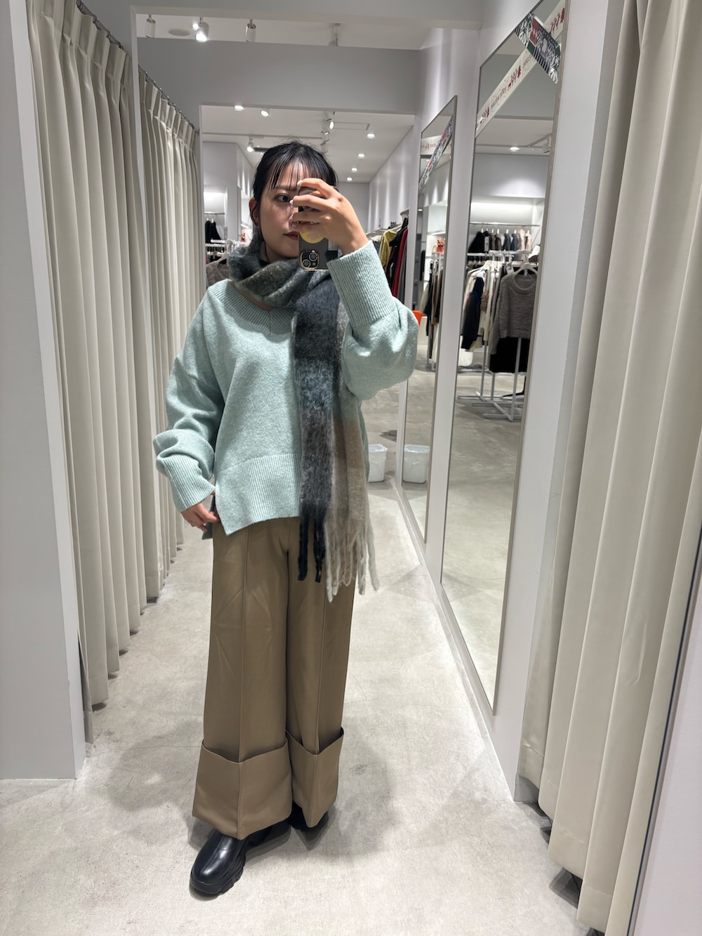冬は色味が重くなりがちなのでミントとベージュで合わせました🎶