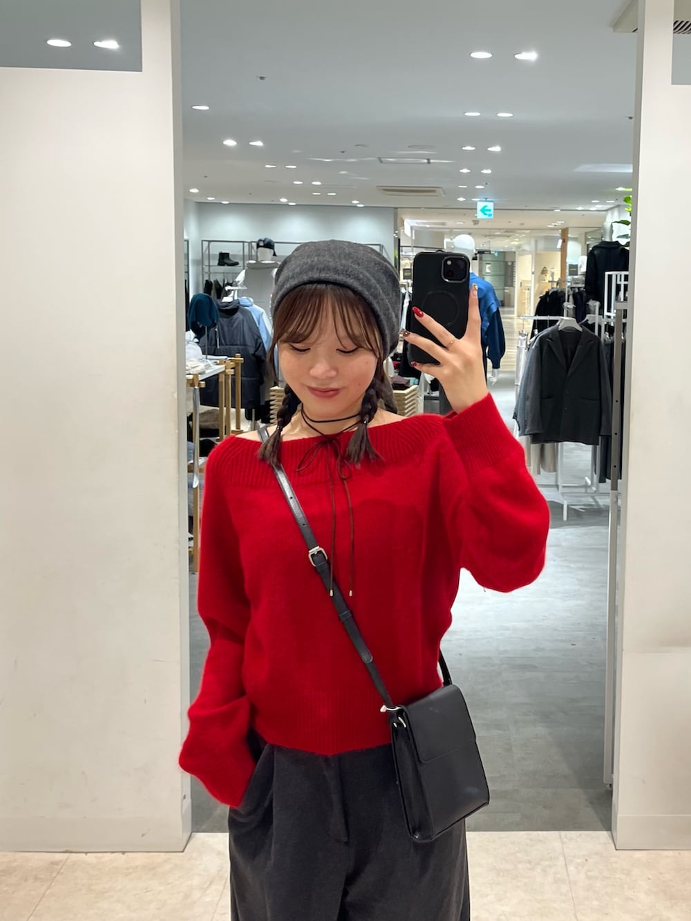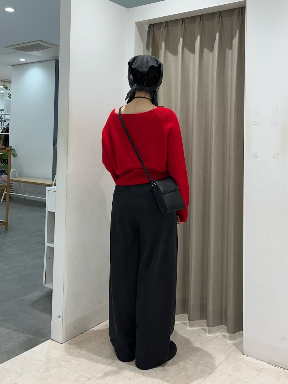 普段は赤系のトップスは挑戦していなかったのですが、こちらはデザインがシンプルでありながら肩周りすっきりで着やすく、リアルバイ候補の推しアイテムです🫶