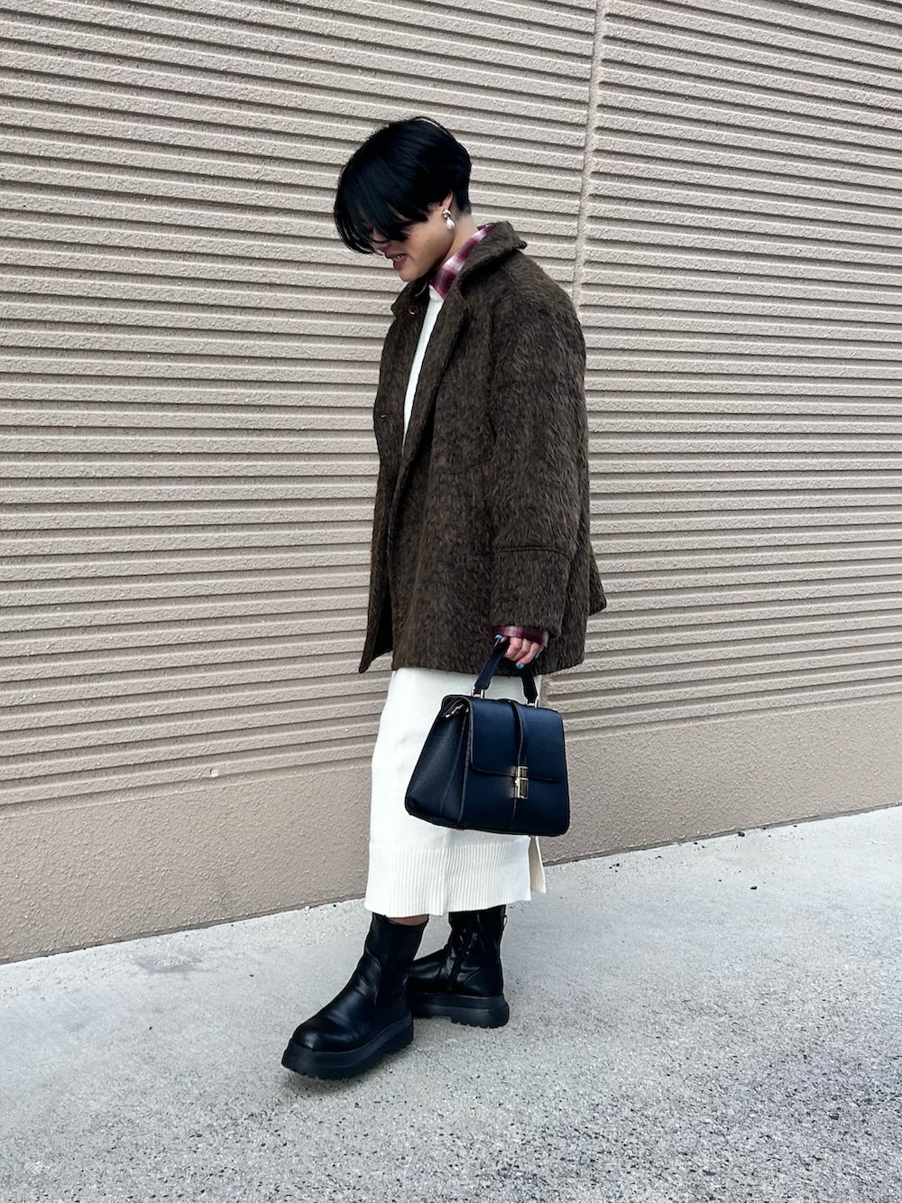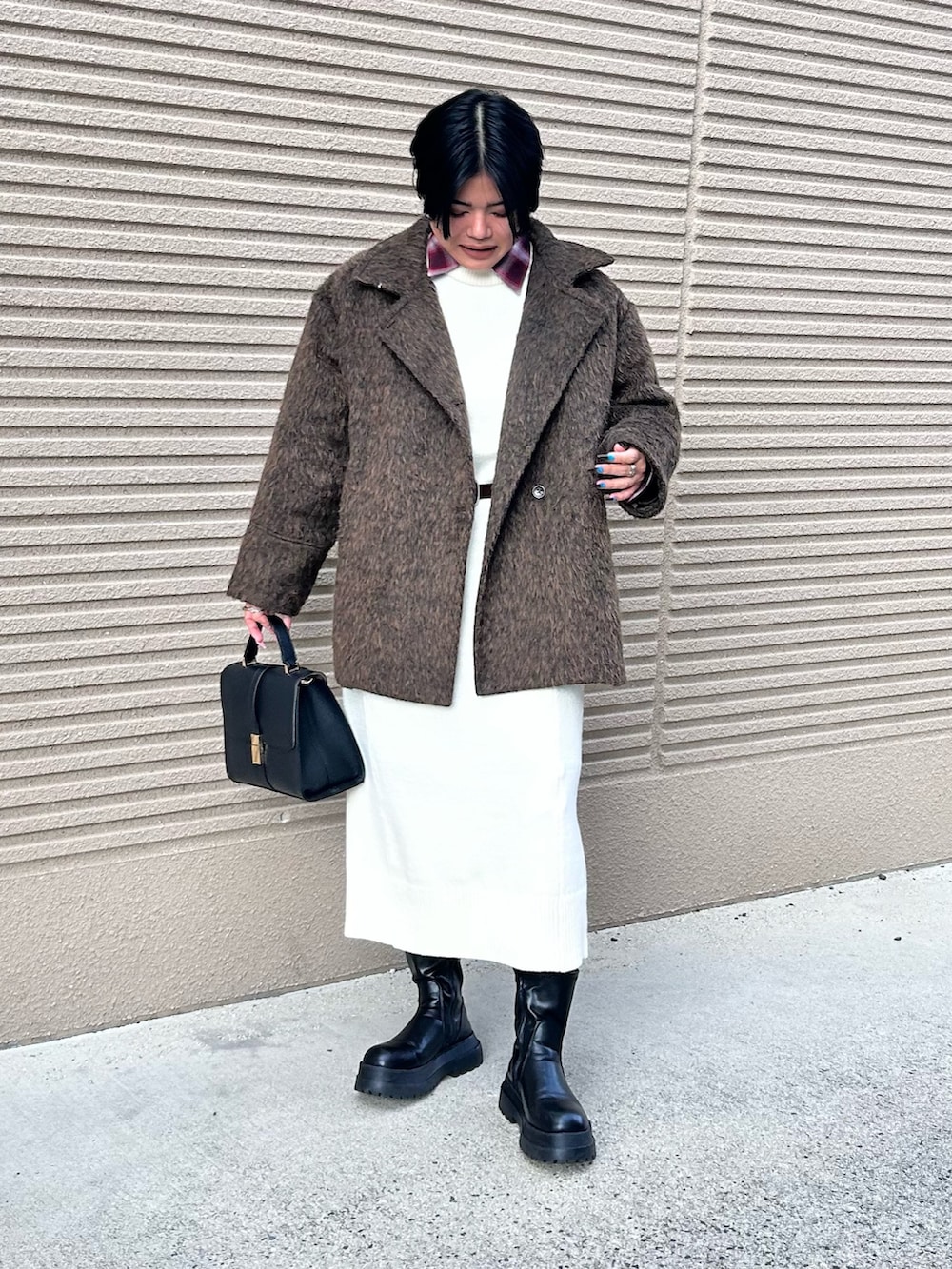 ニットワンピースは生地が分厚く一枚でもとても暖かいのが嬉しいポイントですね☑️