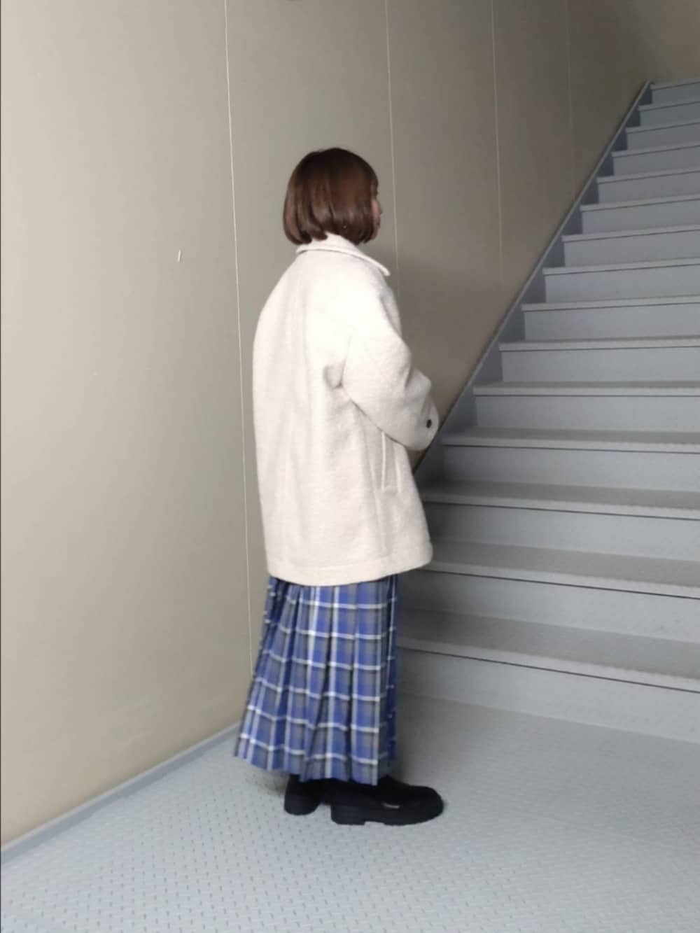 スカートは大人なチェックスカート。丈もスッキリしているので足元のブーツのデザインもしっかり見えます!お好みのサイズで是非お試しください!!