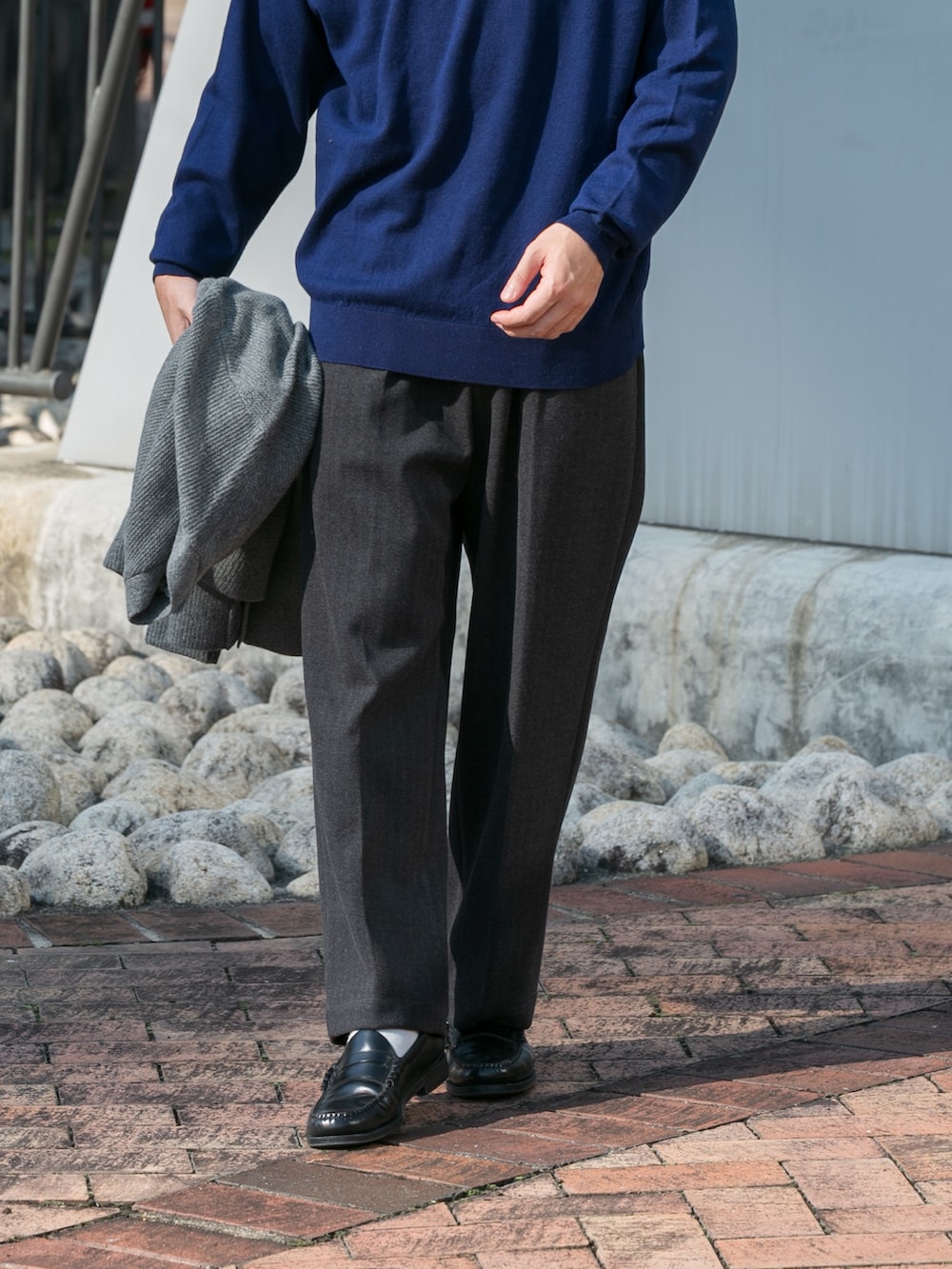 ROSSOストレッチヘリンボーン1タックワイドスラックス- カラー: