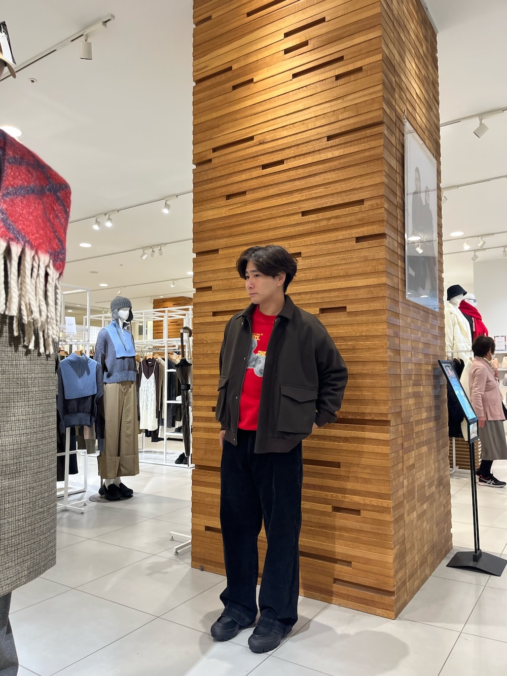 トップスはブルーとレッドのアクセントが効いているネルチェックシャツ!パンツは冬に大活躍の暖かいジャージメルトンパンツ!最後にブーツで締めて完成です!!