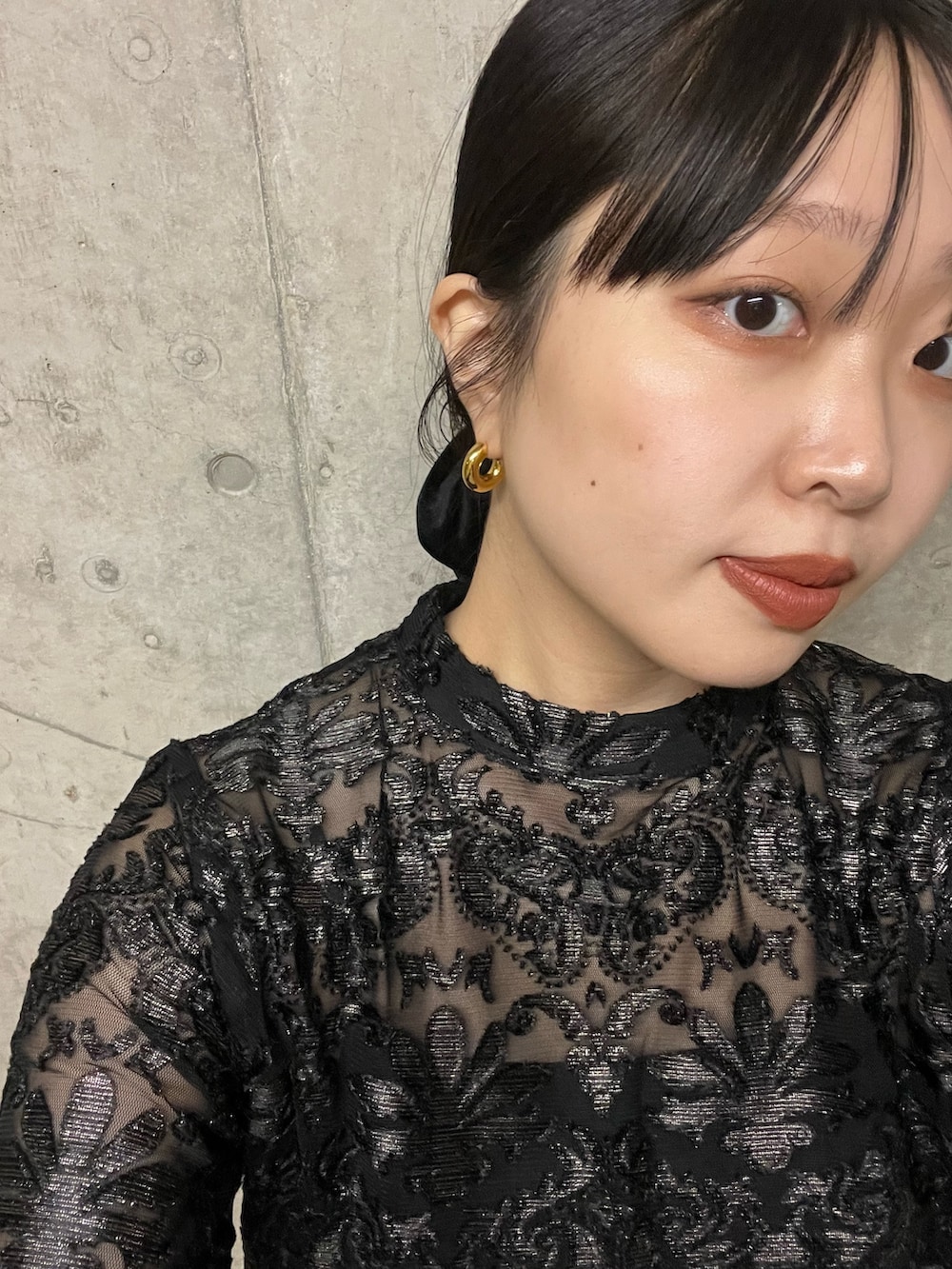 トップスは少し透け、光沢感があり上品な質感です。