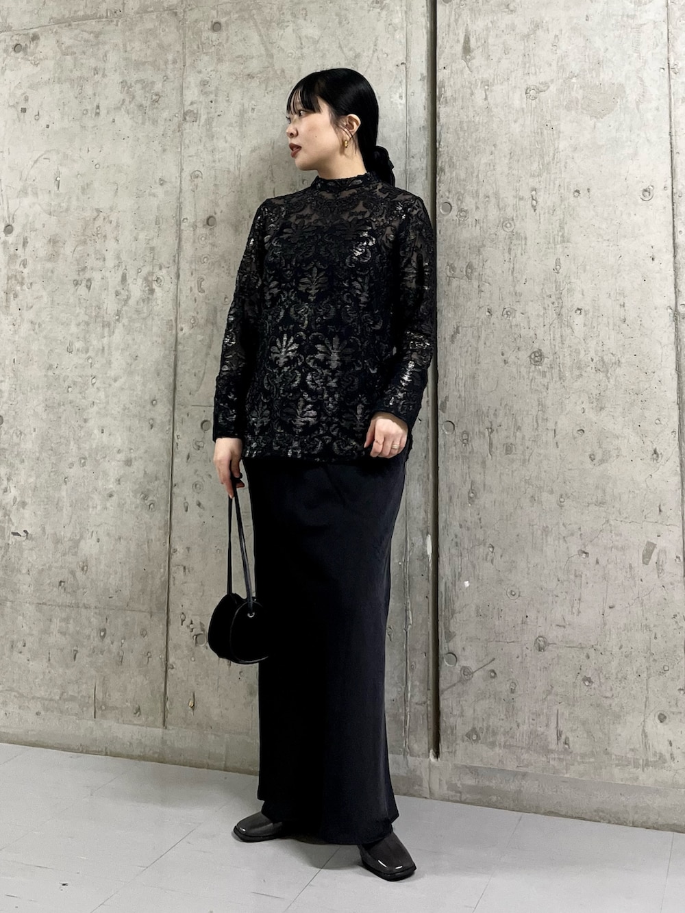 KBFのスカートと合わせて黒のセットアップ風に着てみました。
