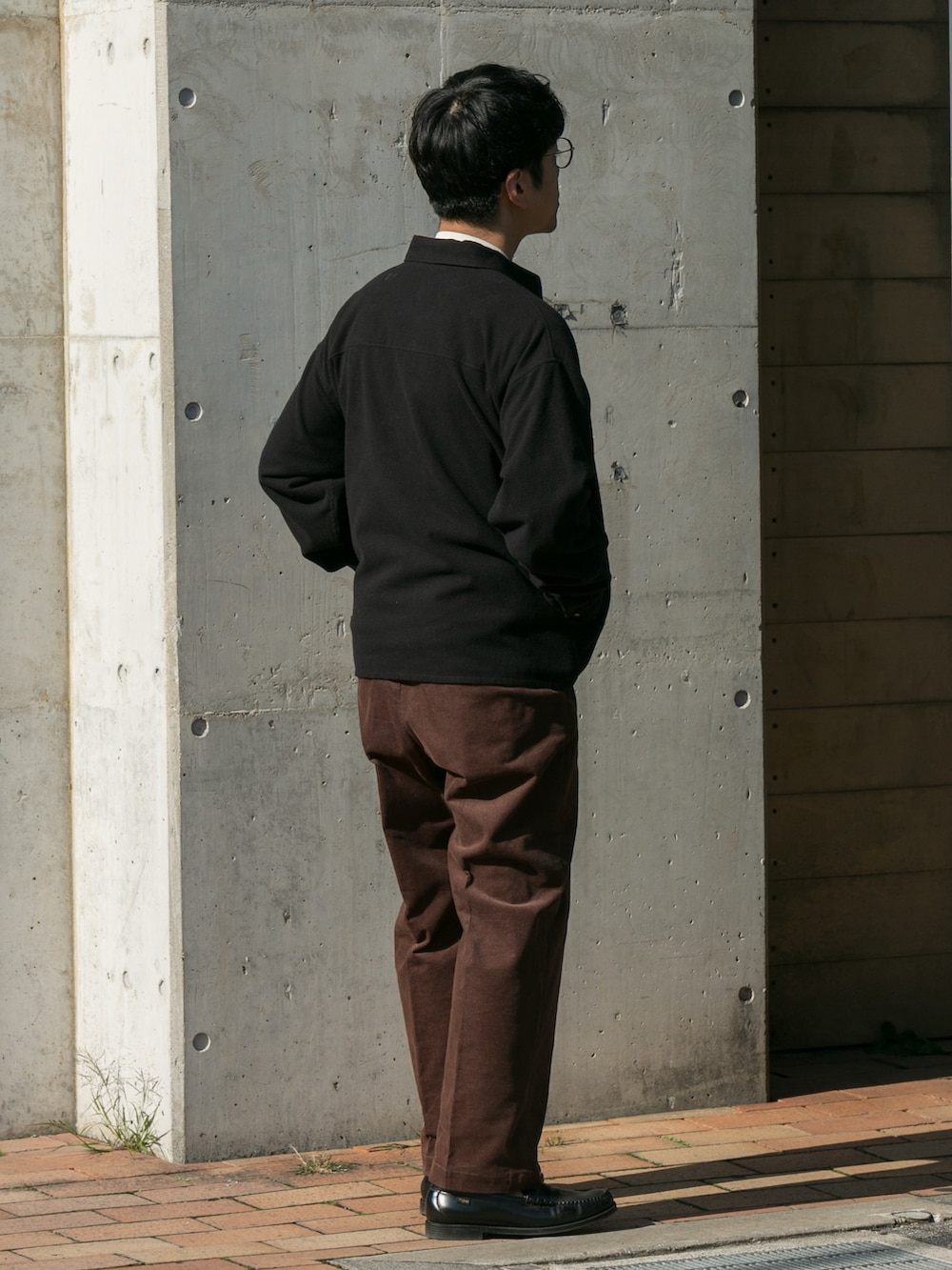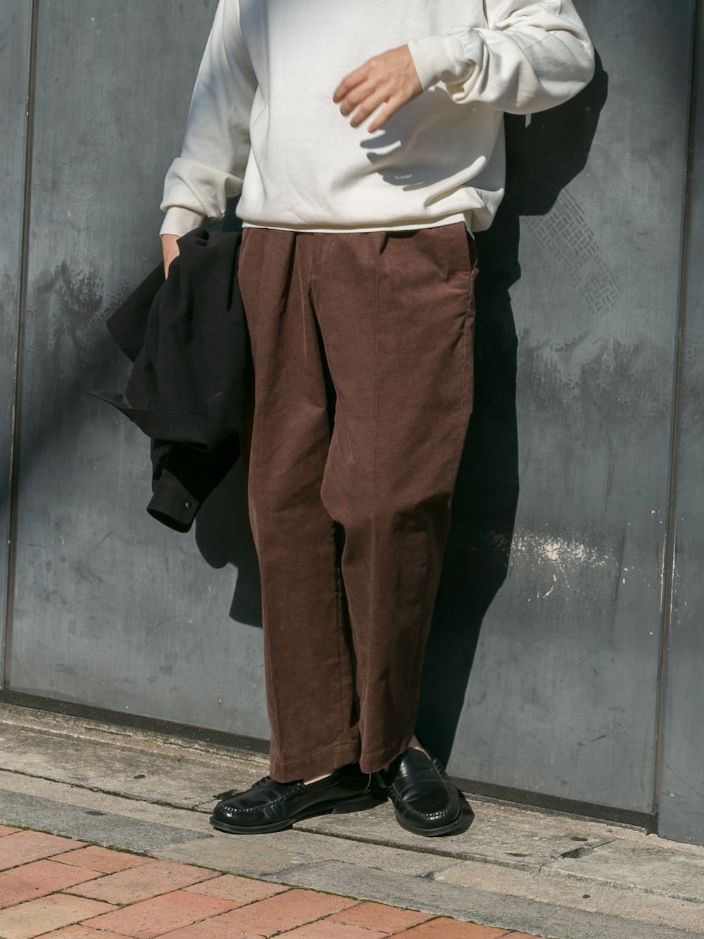 スラックスデザインのコーデュロイパンツは太さはあるもののキレイに仕上がります。