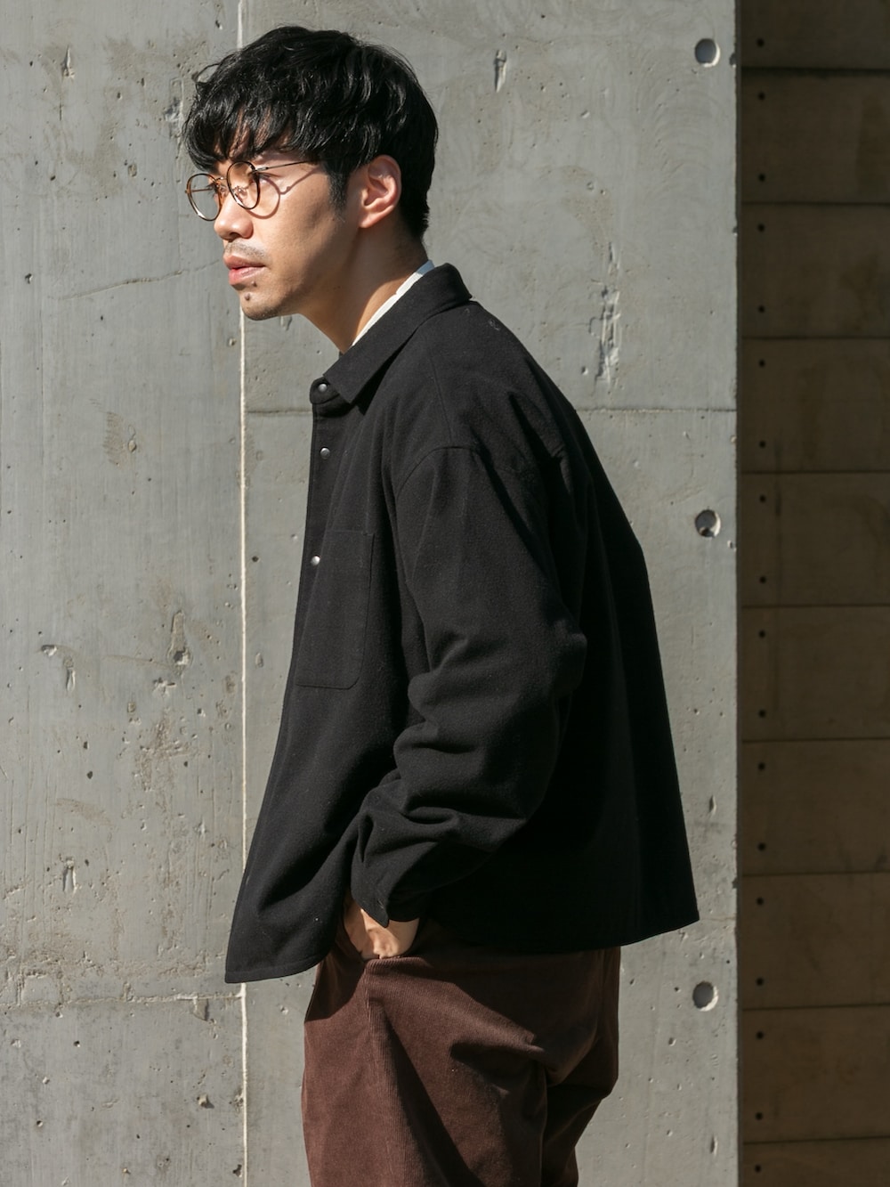 シャツジャケットはCPOをベースにポケットをあえて目立たせないスッキリシルエットにしてるのでスマートな印象に!