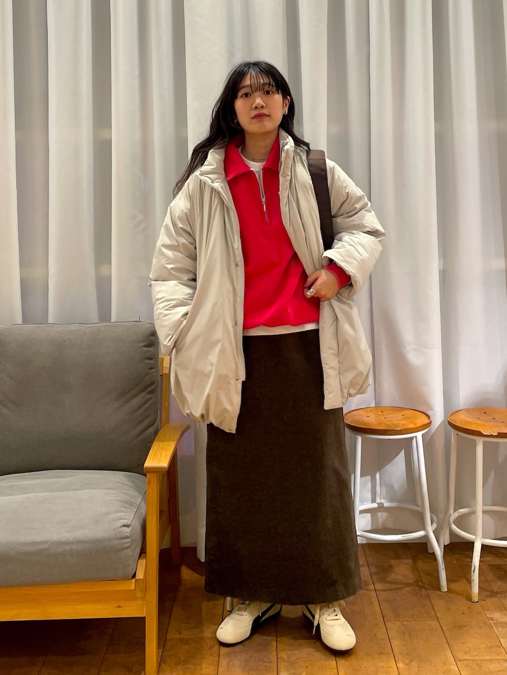アウターは中綿を使用しており、ふわふわで軽いです!長さもちょうどいい🫶🏻