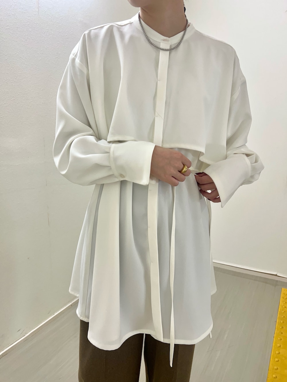 ミニワンピは紐がついているので、ワイドパンツと合わせてもズルっとしすぎず着れます〜😊