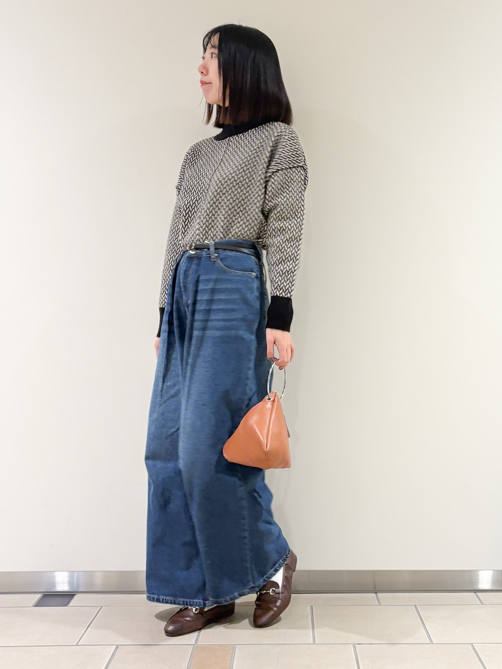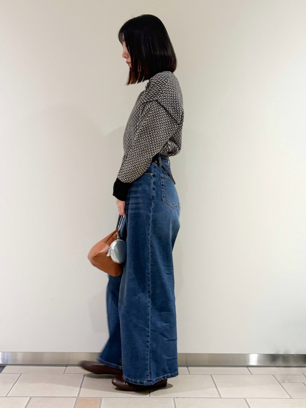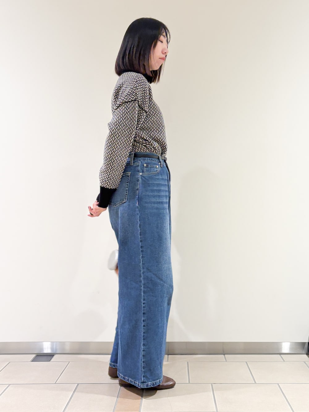 細めのベルトが大人っぽいベルト付きワイドデニムです◎