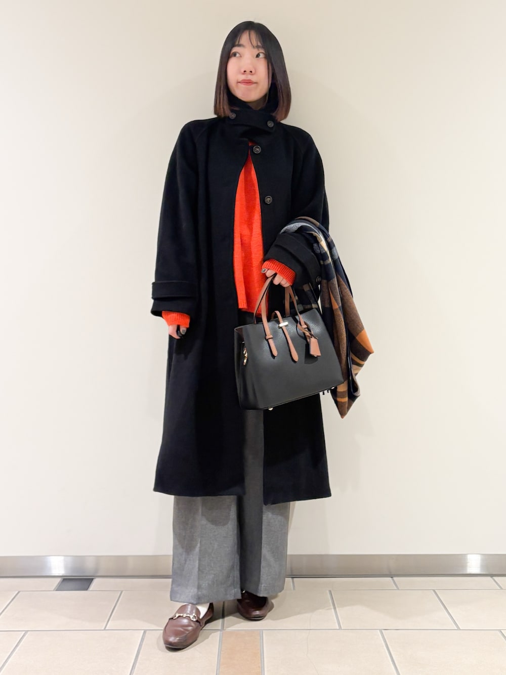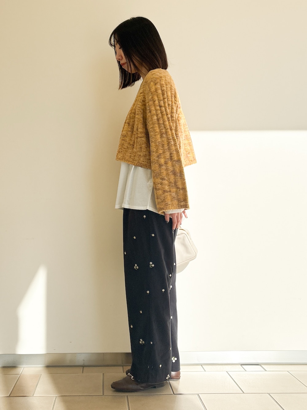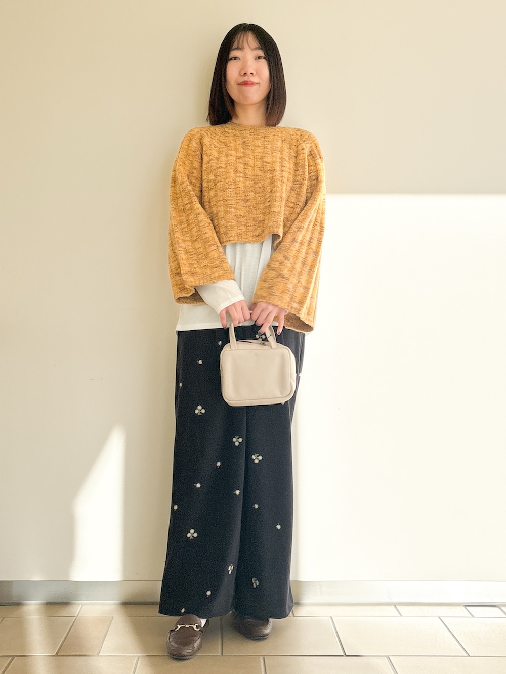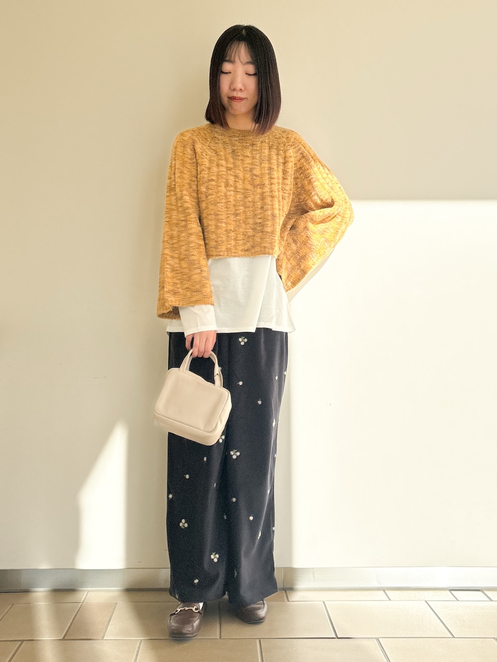 ショート丈のニットでレイヤードコーデ◎