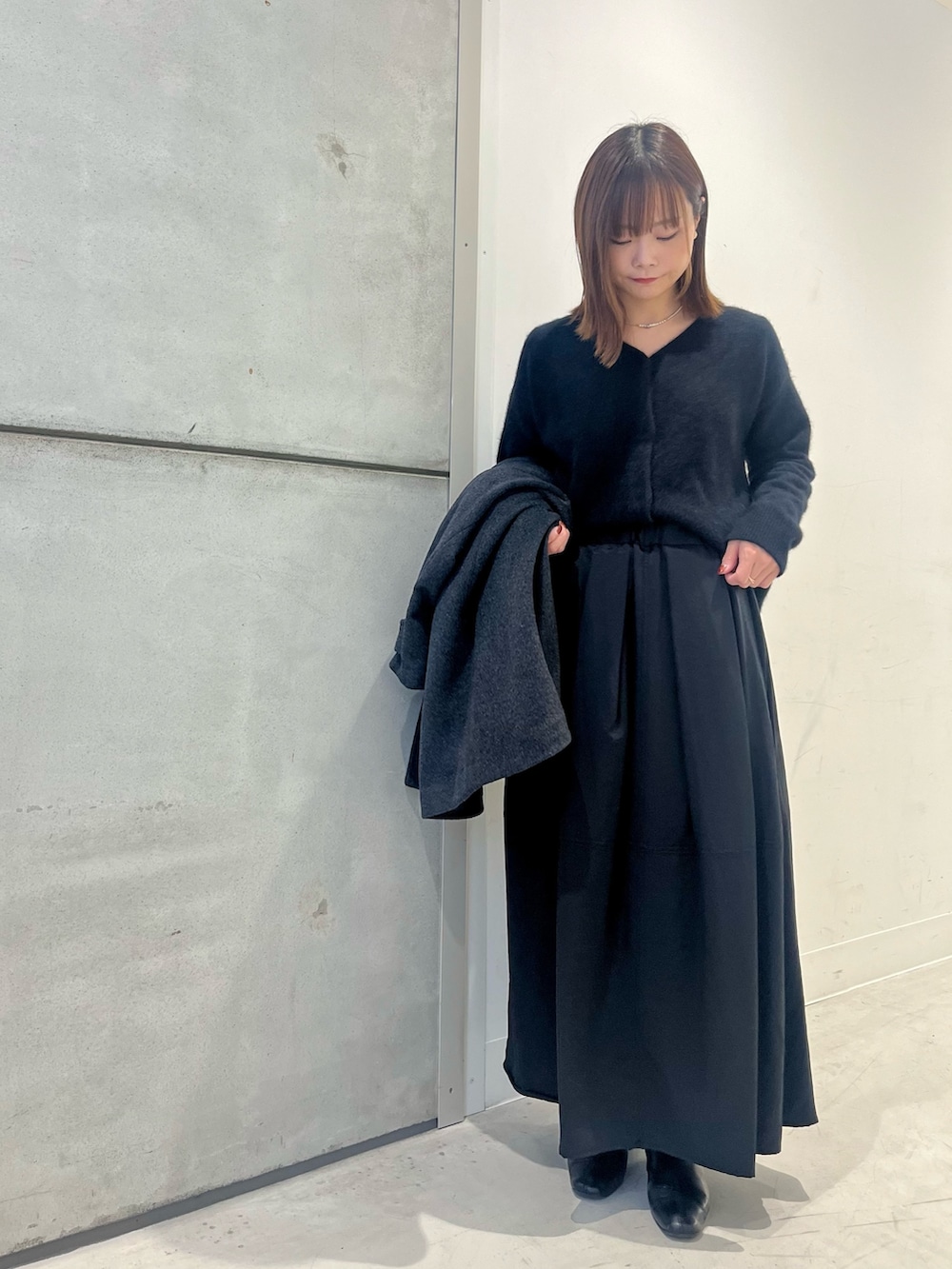 中に着てるROSSOのカーディガンはふわっとした素材感が女性らしい一枚です。