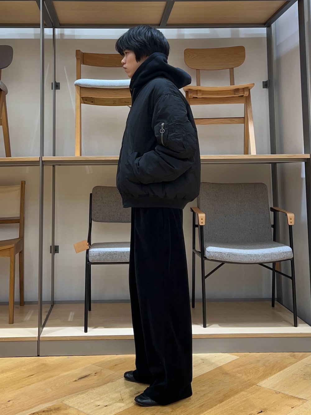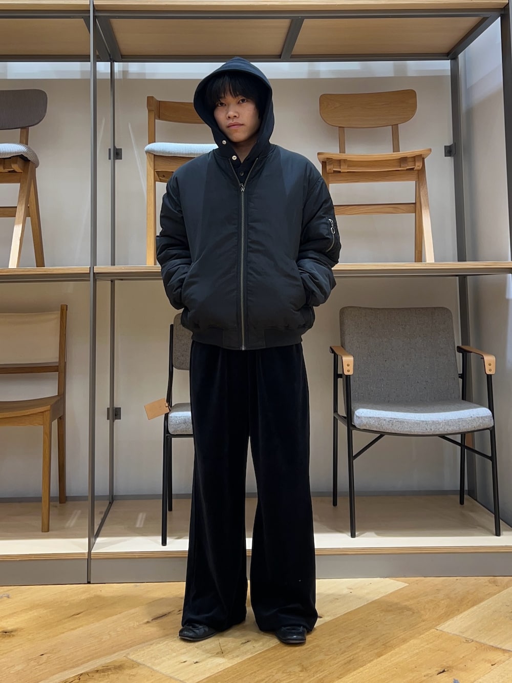 ベロアパンツで大人な上品感を出しつつかっこいいMA1でまとめました!