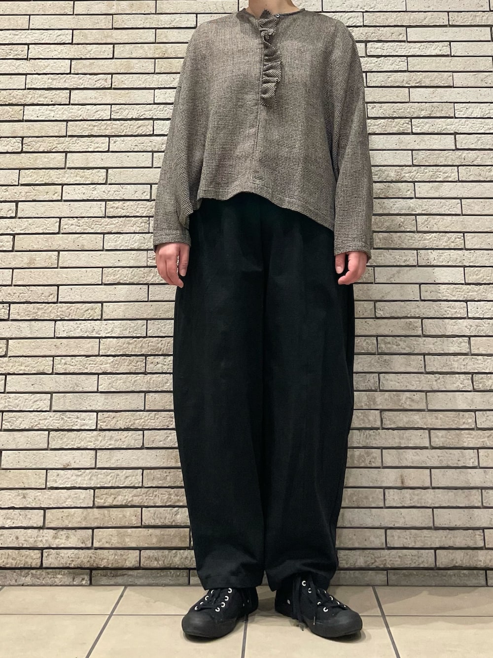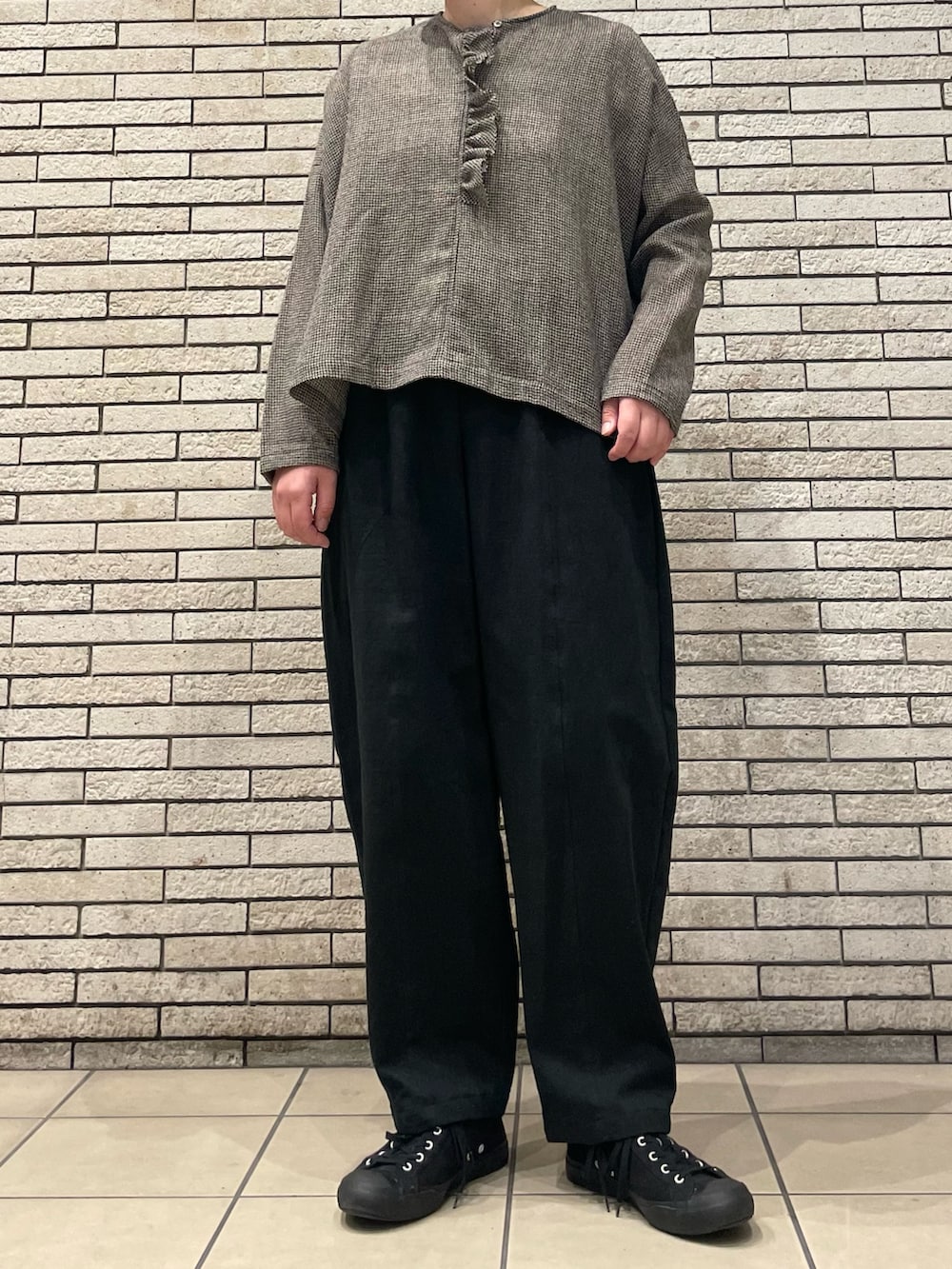 今回はブラックのパンツと合わせてシンプルな大人の装いに。