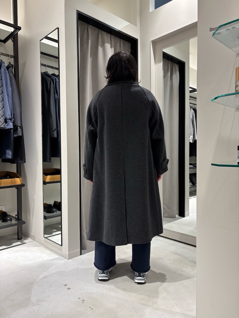 ゆったりとしたシルエットと丈感でシンプルな雰囲気が際立つコートです。