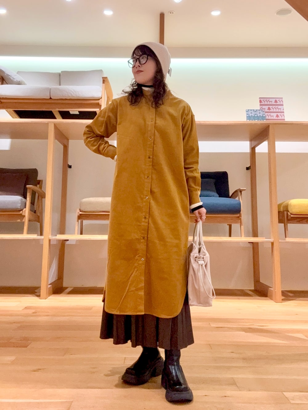 DOORS『WEB/一部店舗限定カラー』『UR TECH』コーデュロイシャツワンピース- 着用カラー: