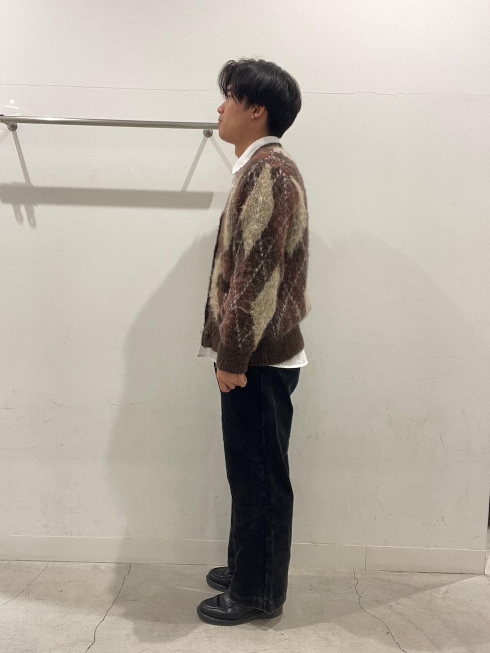 白シャツをレイヤードしてクリーンさをプラスし、ボトムはブラックのコーデュロイで季節感をしっかり出しました!!